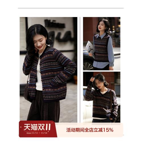 (免運)の費爾島毛衣意大利工藝羊毛羊絨提花針織衫開衫背心ZZO765811AG#
