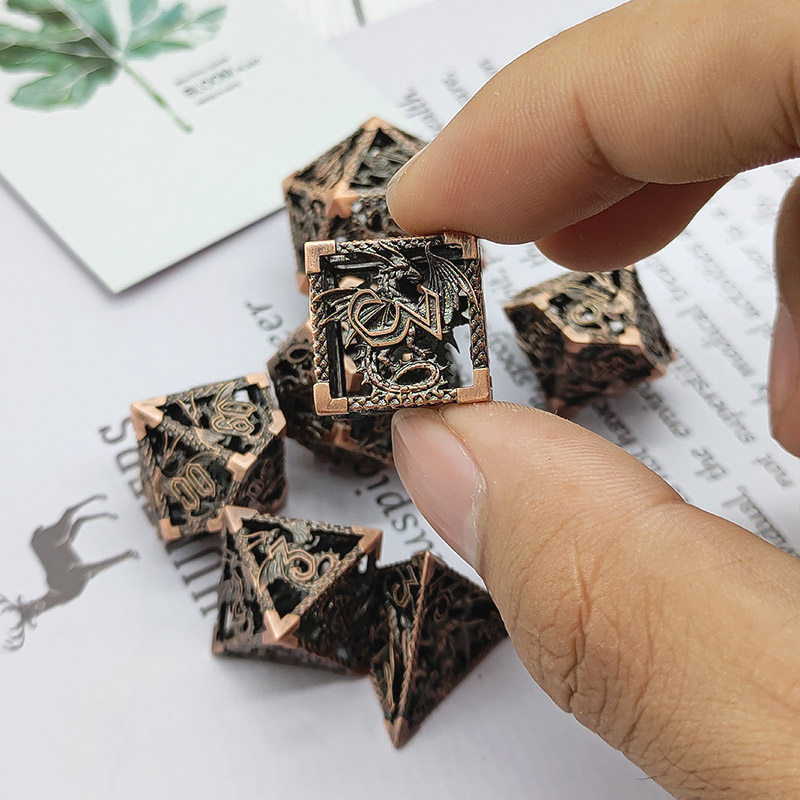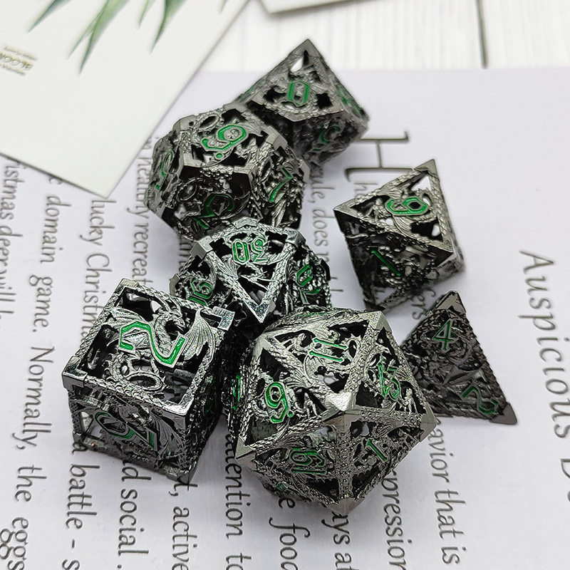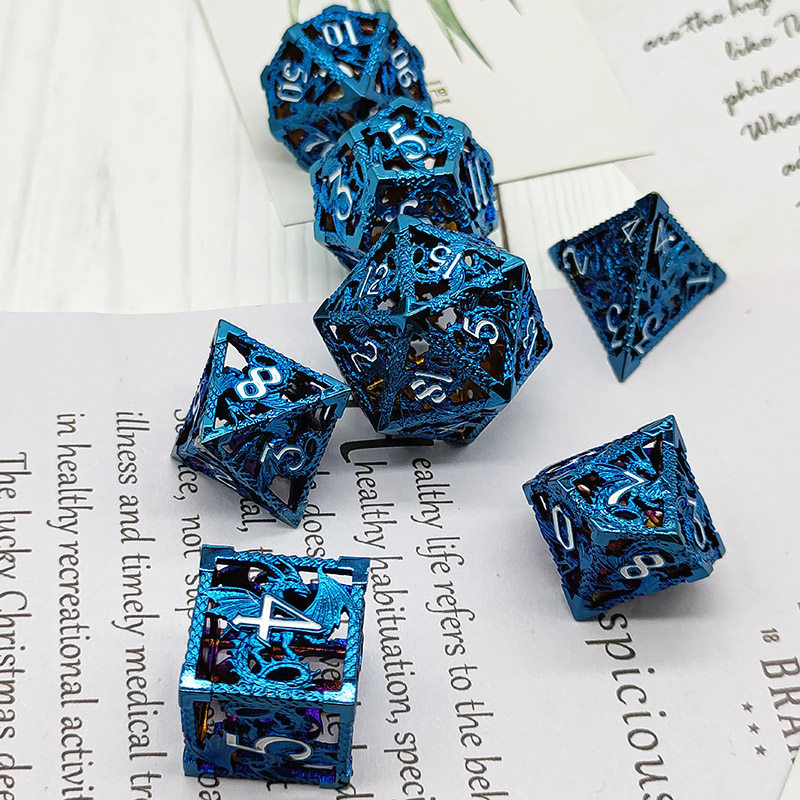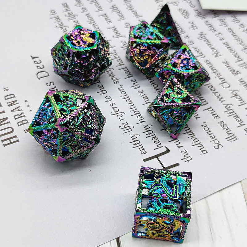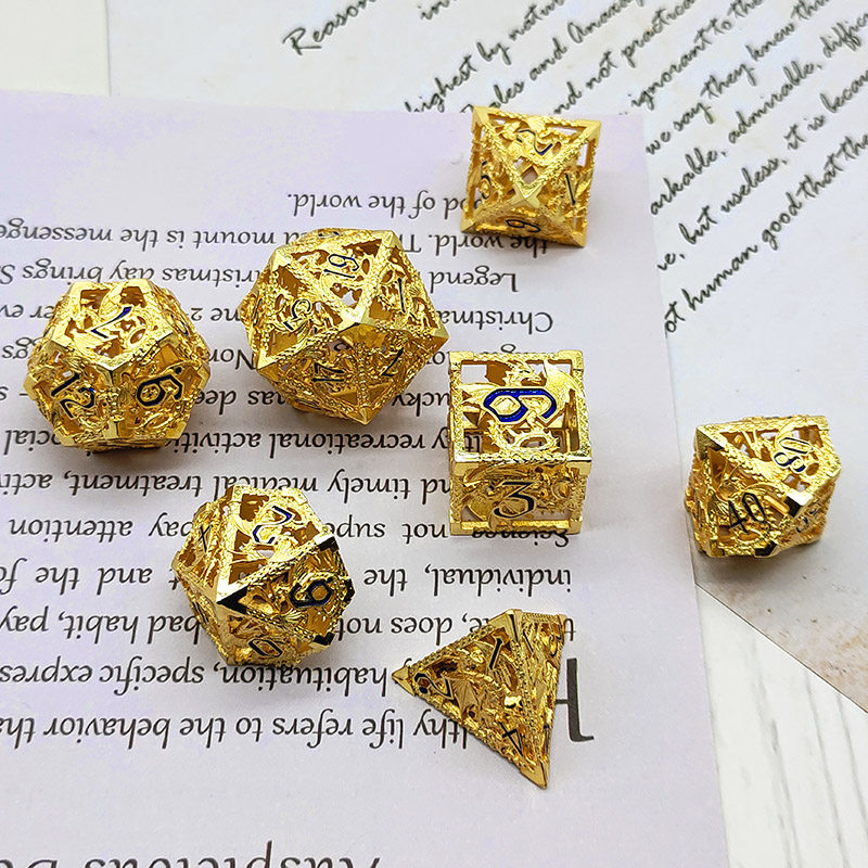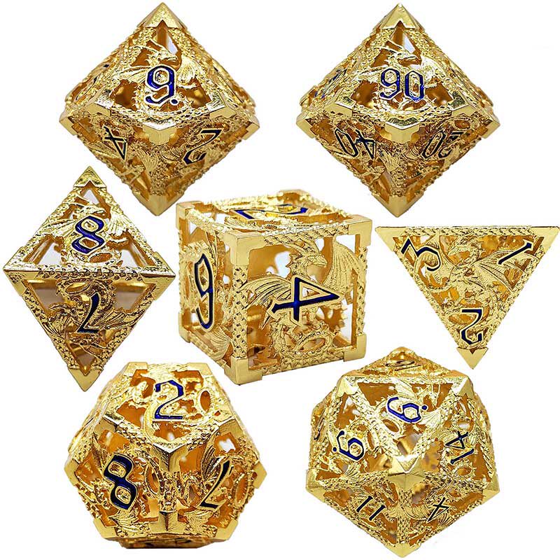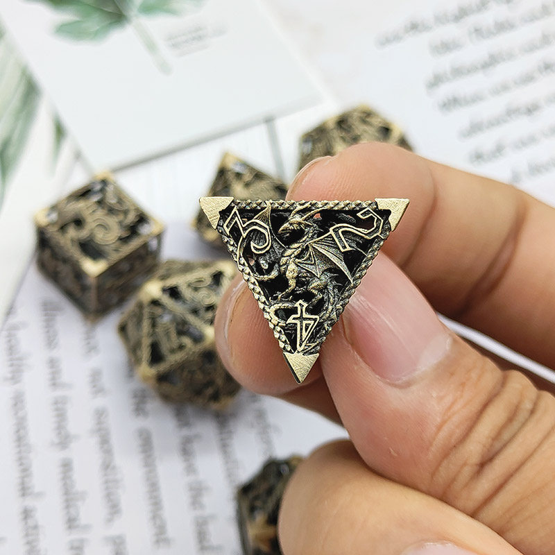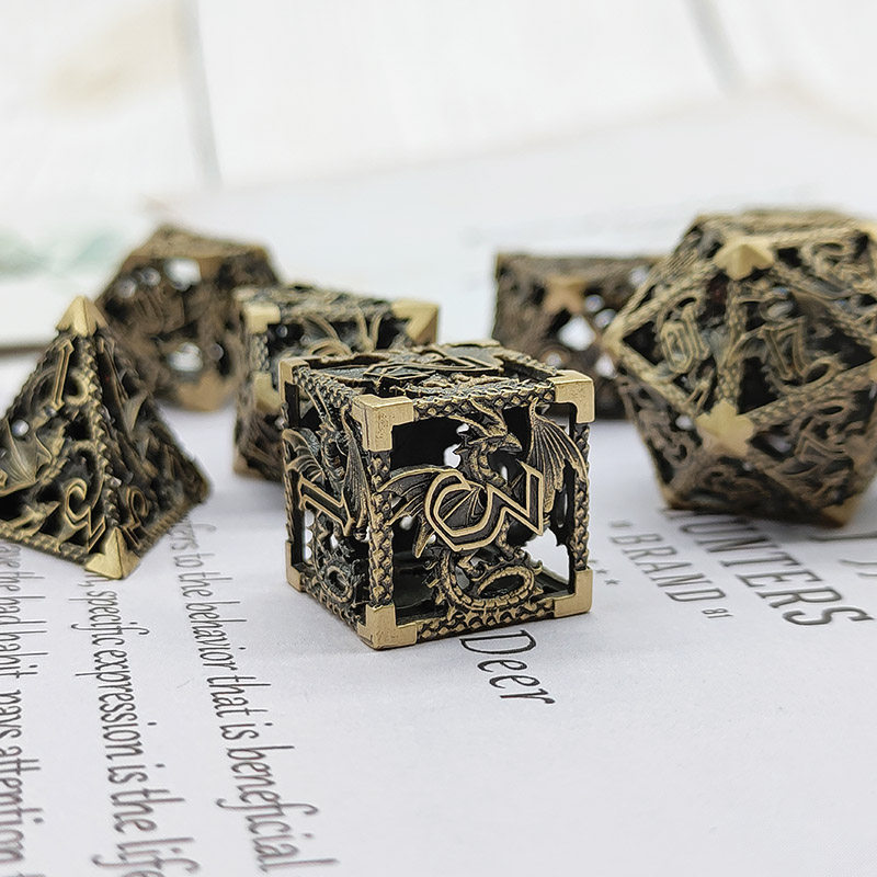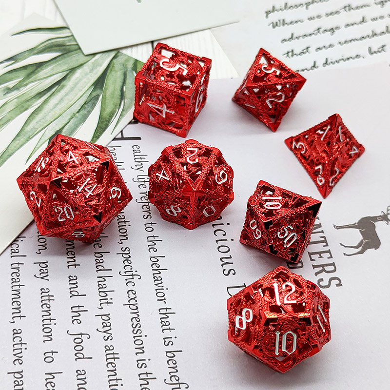 DND金屬龍空心骰子套裝,每套7個,送一個金屬包裝盒。包含:D4、D6、D8、D10(0-9)、D10(00-90)、D12、D20。