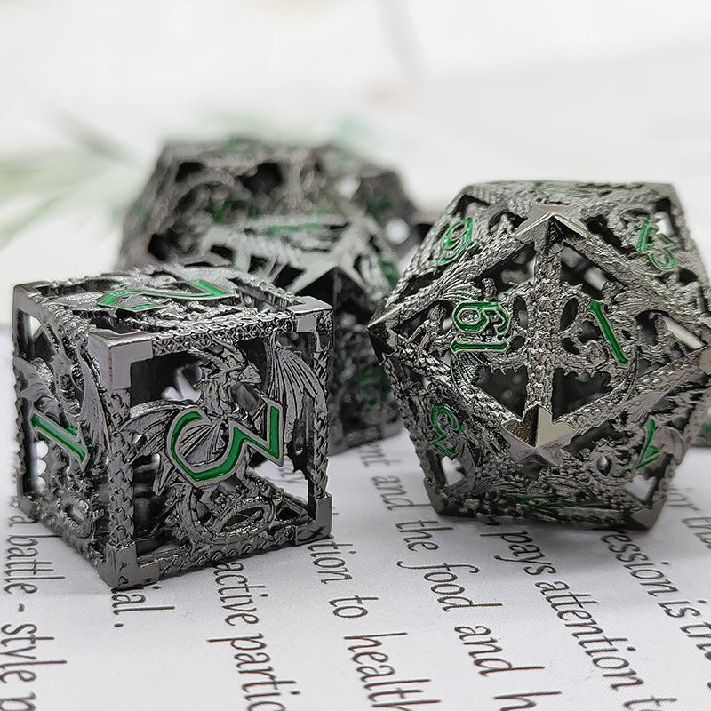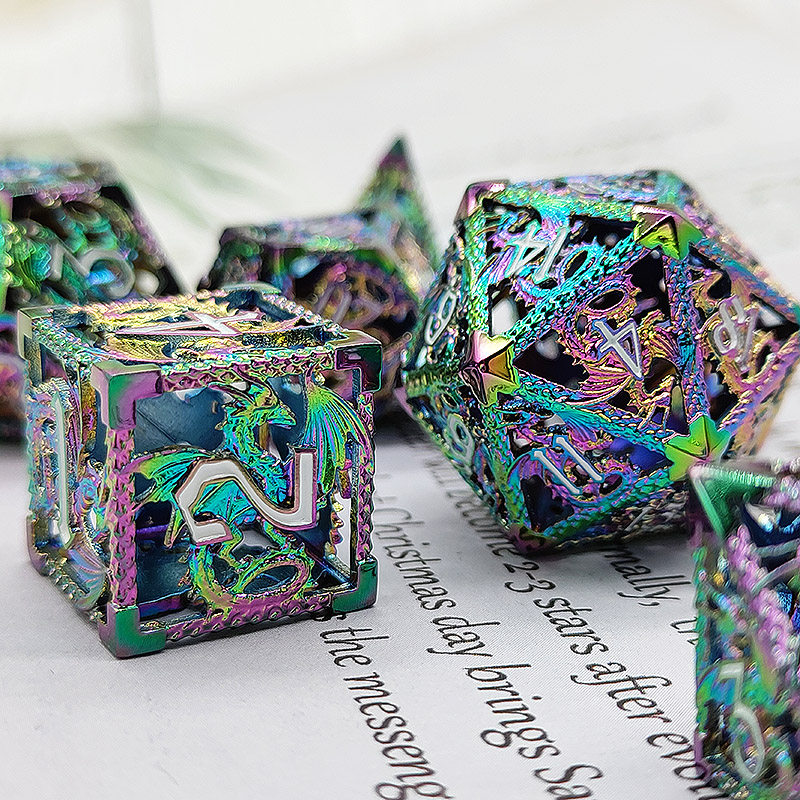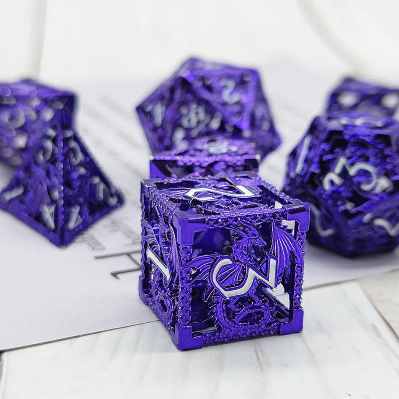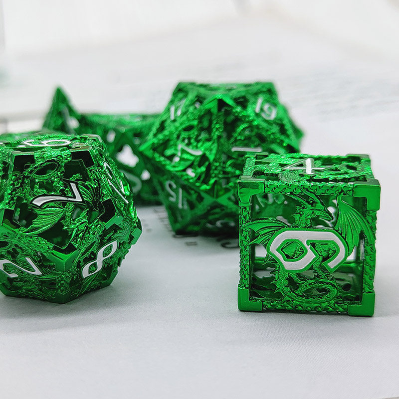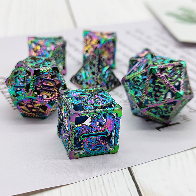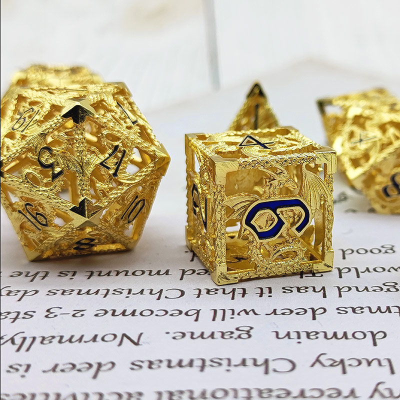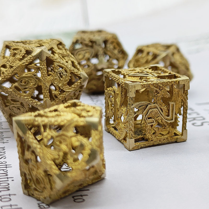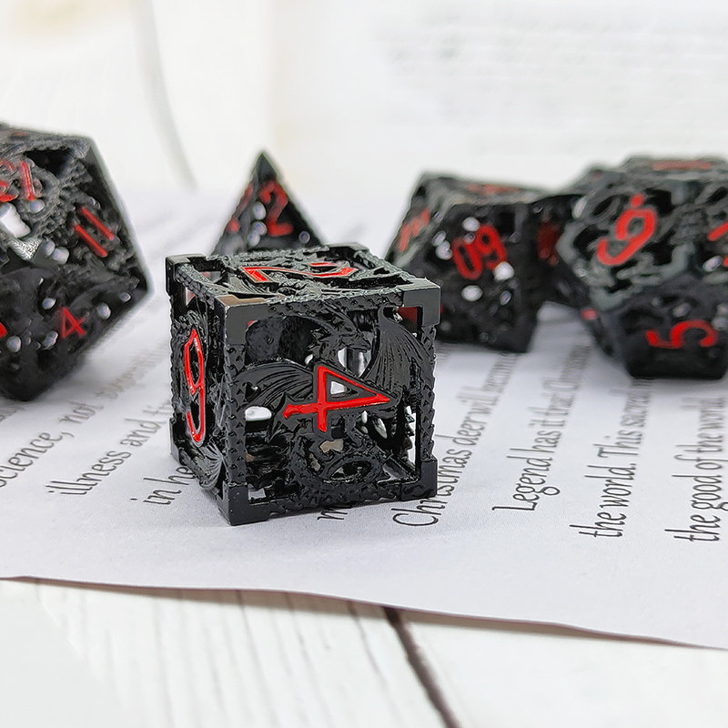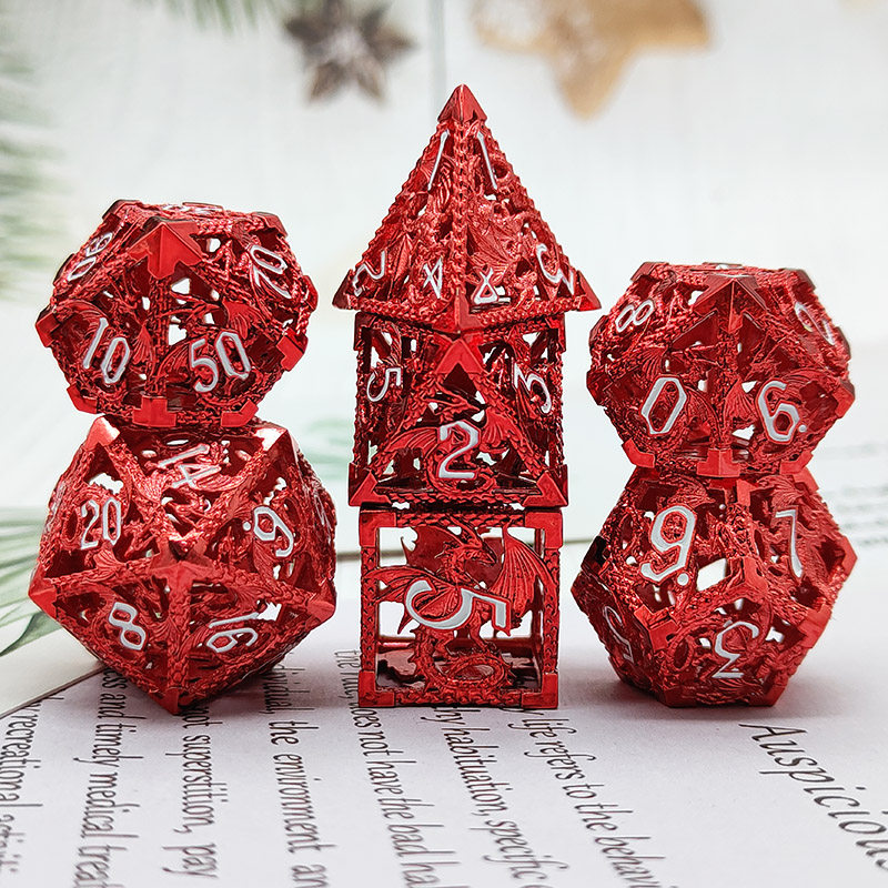 DND金屬龍空心骰子套裝,每套7個,送一個金屬包裝盒。包含:D4、D6、D8、D10(0-9)、D10(00-90)、D12、D20。