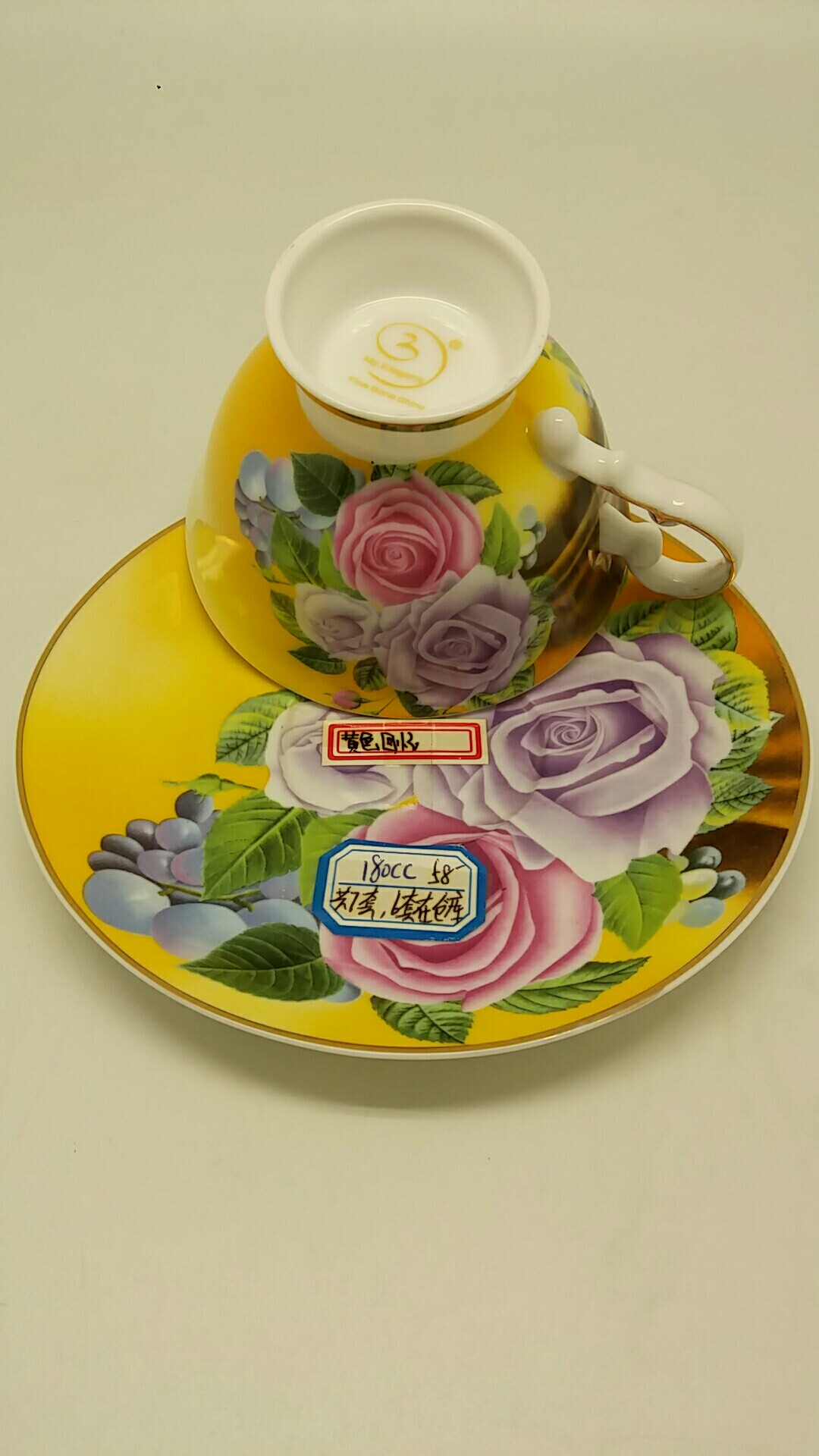 規格:禮盒裝6杯6碟,原價1杯1碟是68元,現在是48元,庫存剩7套。杯口直徑:10cm,杯高度:7cm; 碟直徑:15.2cm