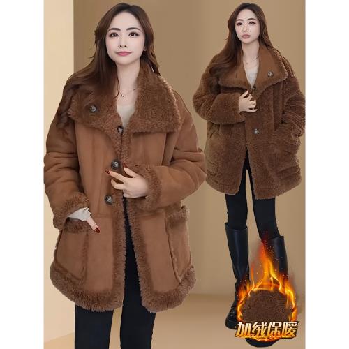 雙面穿皮毛一體外套女2026秋冬新款羊羔毛加絨加厚保暖中長款大衣
