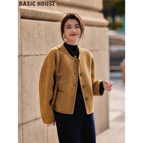 (免運)Basic House/百家好法式小香風穿搭短款綿羊毛外套女2025秋冬新款