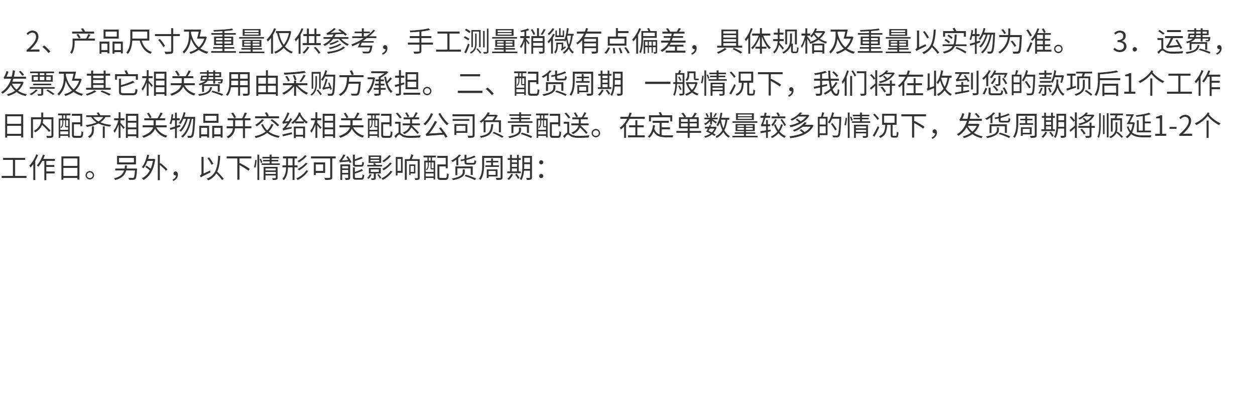 海運商品可能因運輸過程出現輕微碰撞痕跡,此類情況不影響使用且不屬於瑕疵範疇,如無法接受,請勿下單。 - 訂單分包與短缺處理
