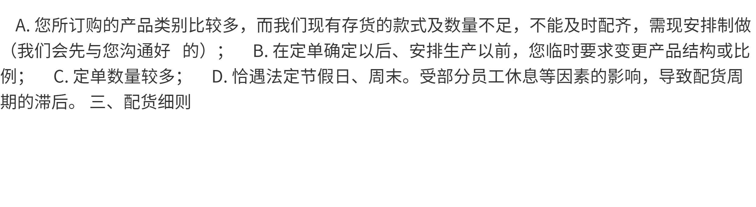 如因不可抗力因素導致商品缺貨或廠商無法出貨,本店保有取消訂單的權利。若訂單部分商品缺貨,由於代購模式採不同廠商個別出貨,部分缺貨無法取消整筆訂單,敬請見諒,商家將為缺貨部分辦理退款處理。無法受理因缺貨要求取消整筆訂單。 - 配送時間與緊急需求