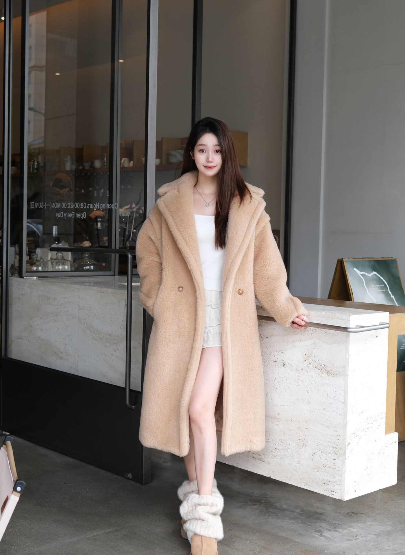 獨家開發面料,手感軟糯,毛毛密實,保暖且不壓身