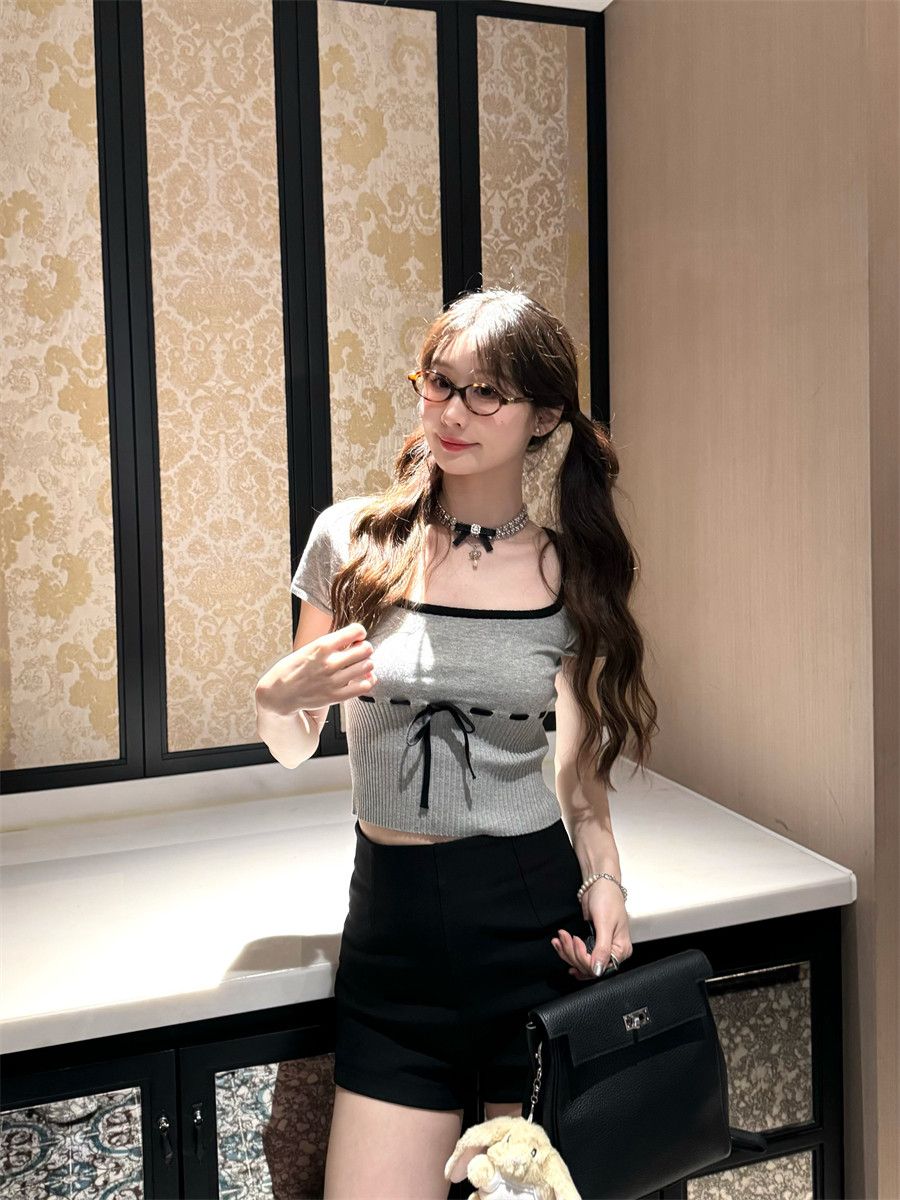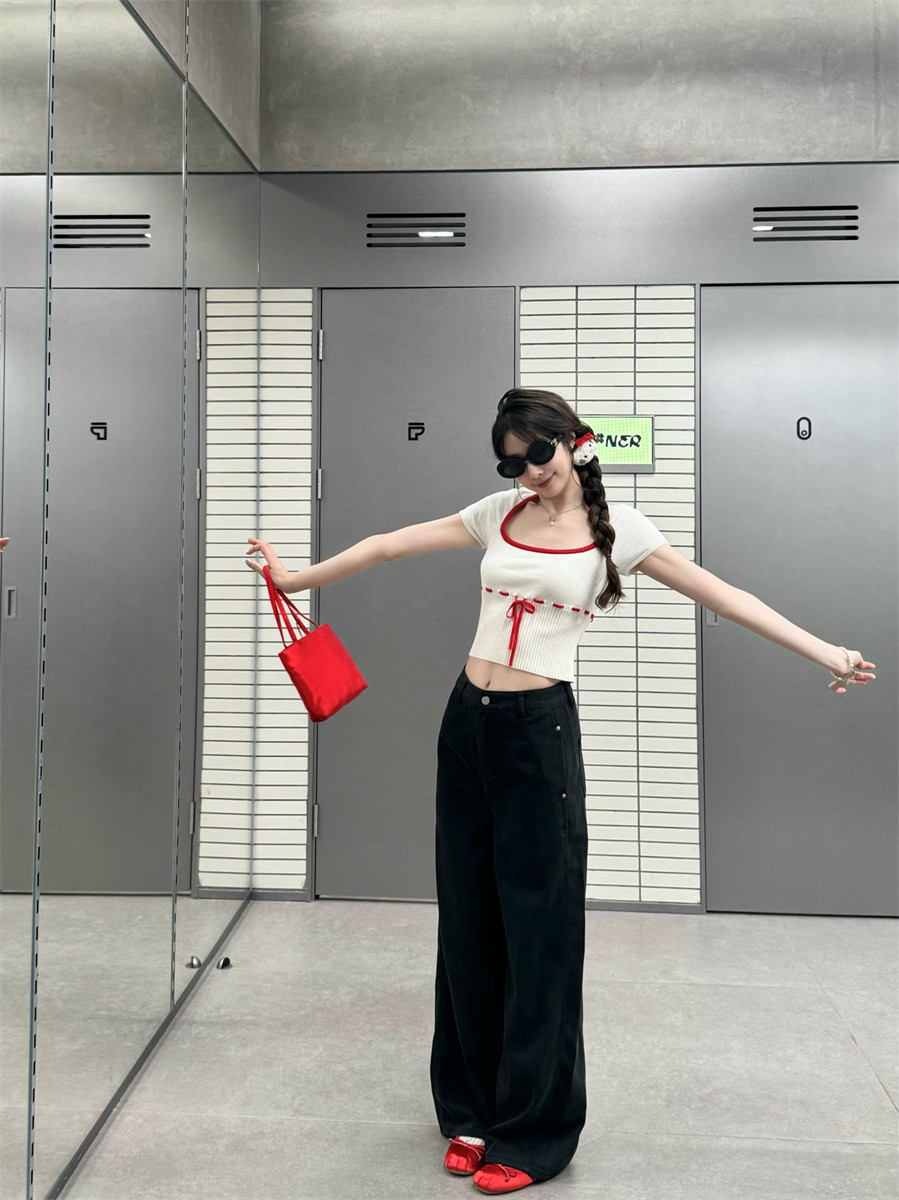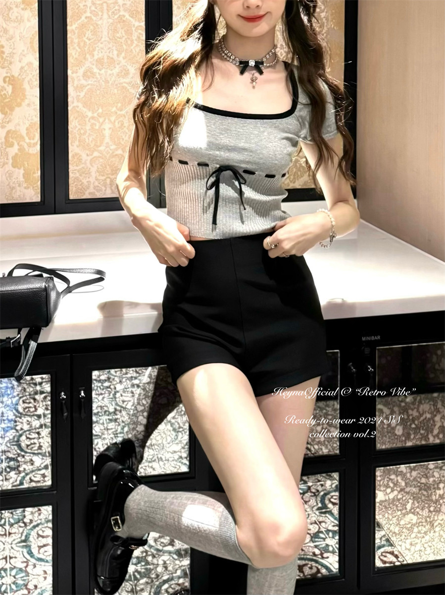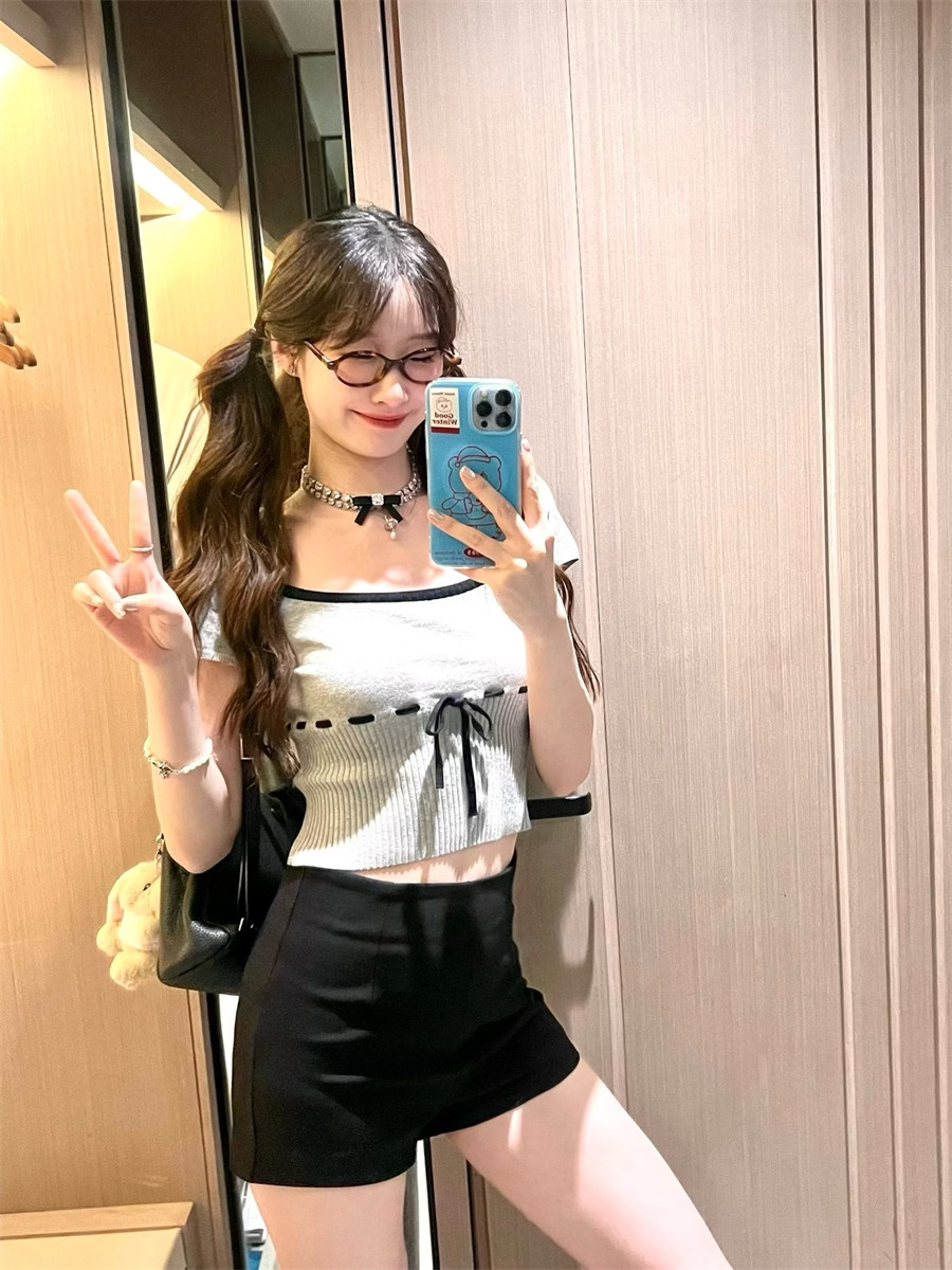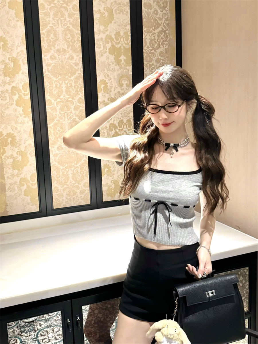 短款修身還很顯比例,微微勾勒出小蠻腰,上身灰常吸睛好看