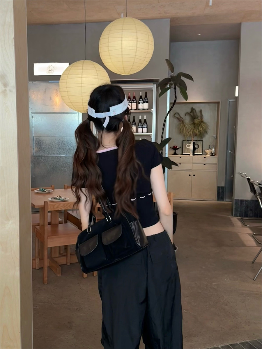 領口做了一圈撞色包邊設計,和胸口的撞色相呼應,讓整件衣服變得geng加亮眼起來