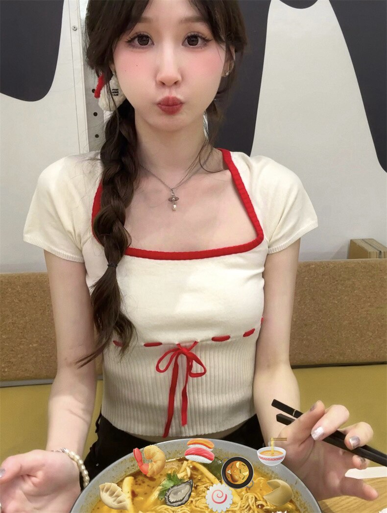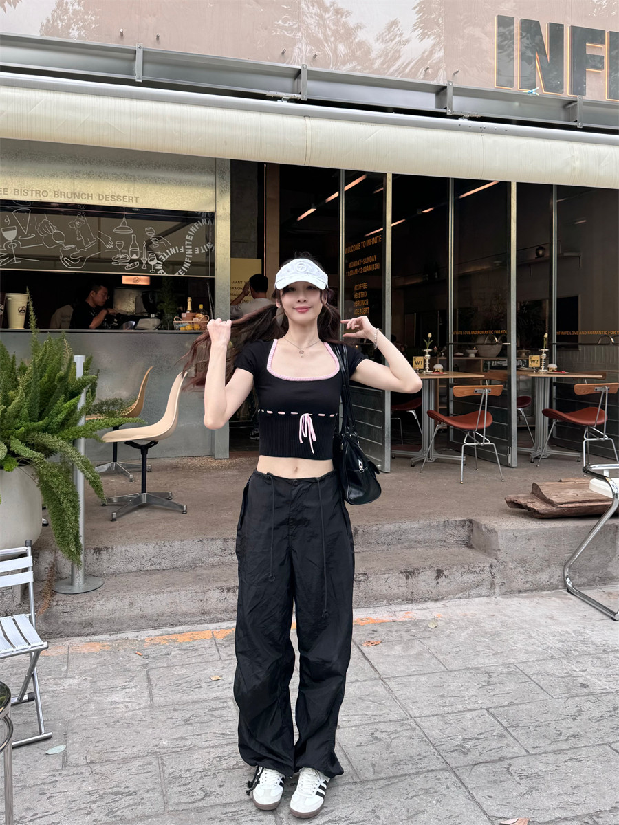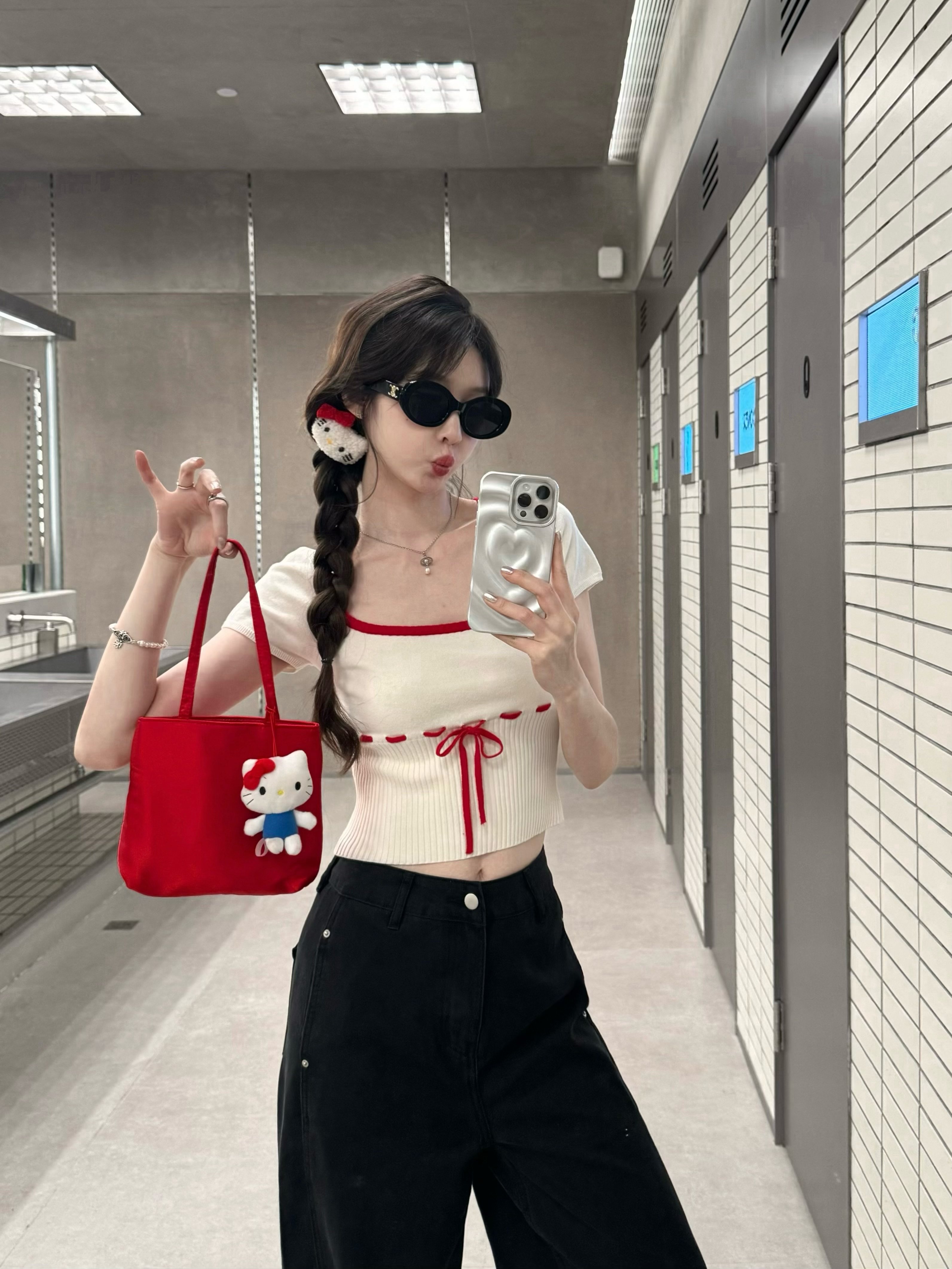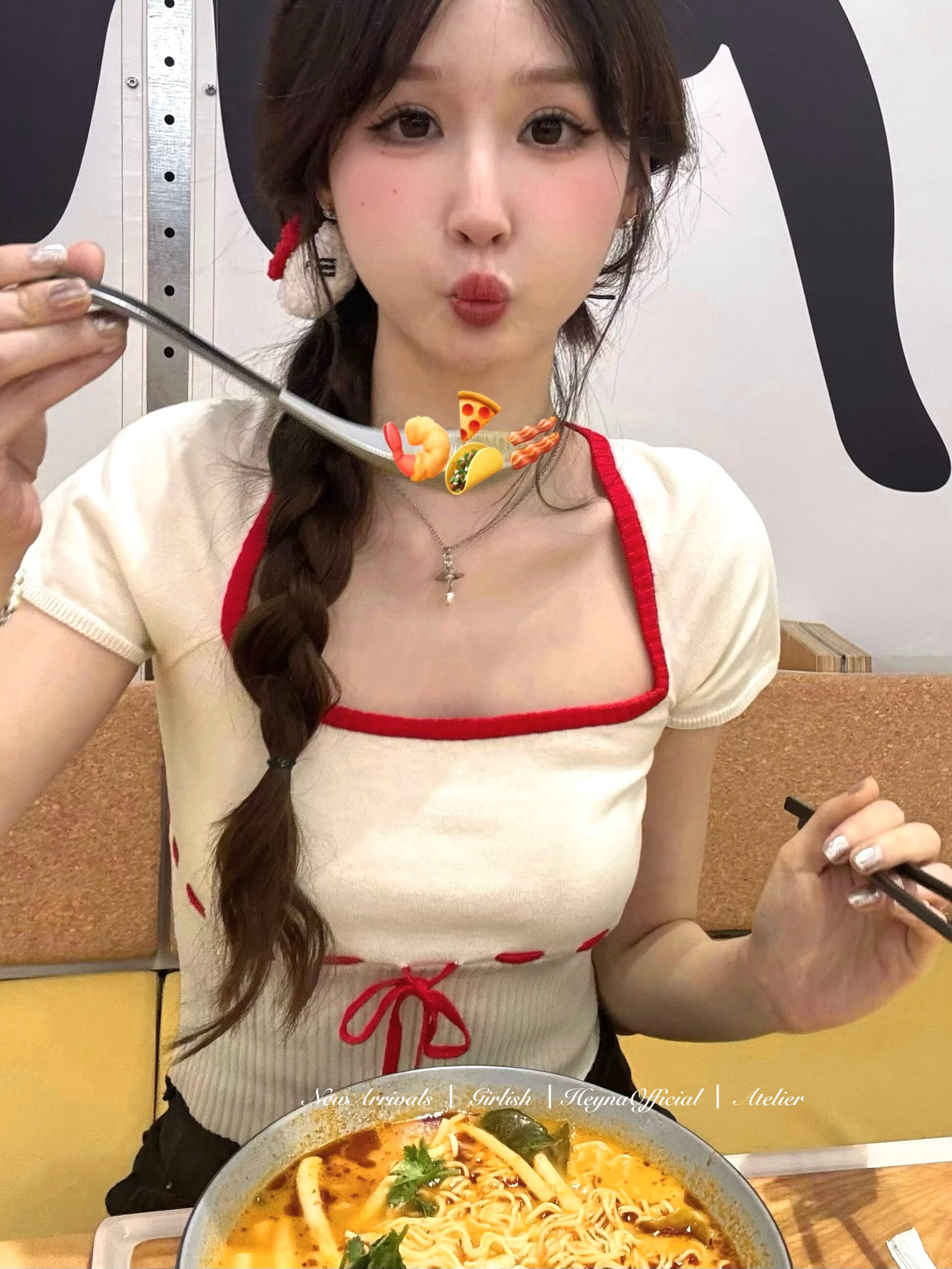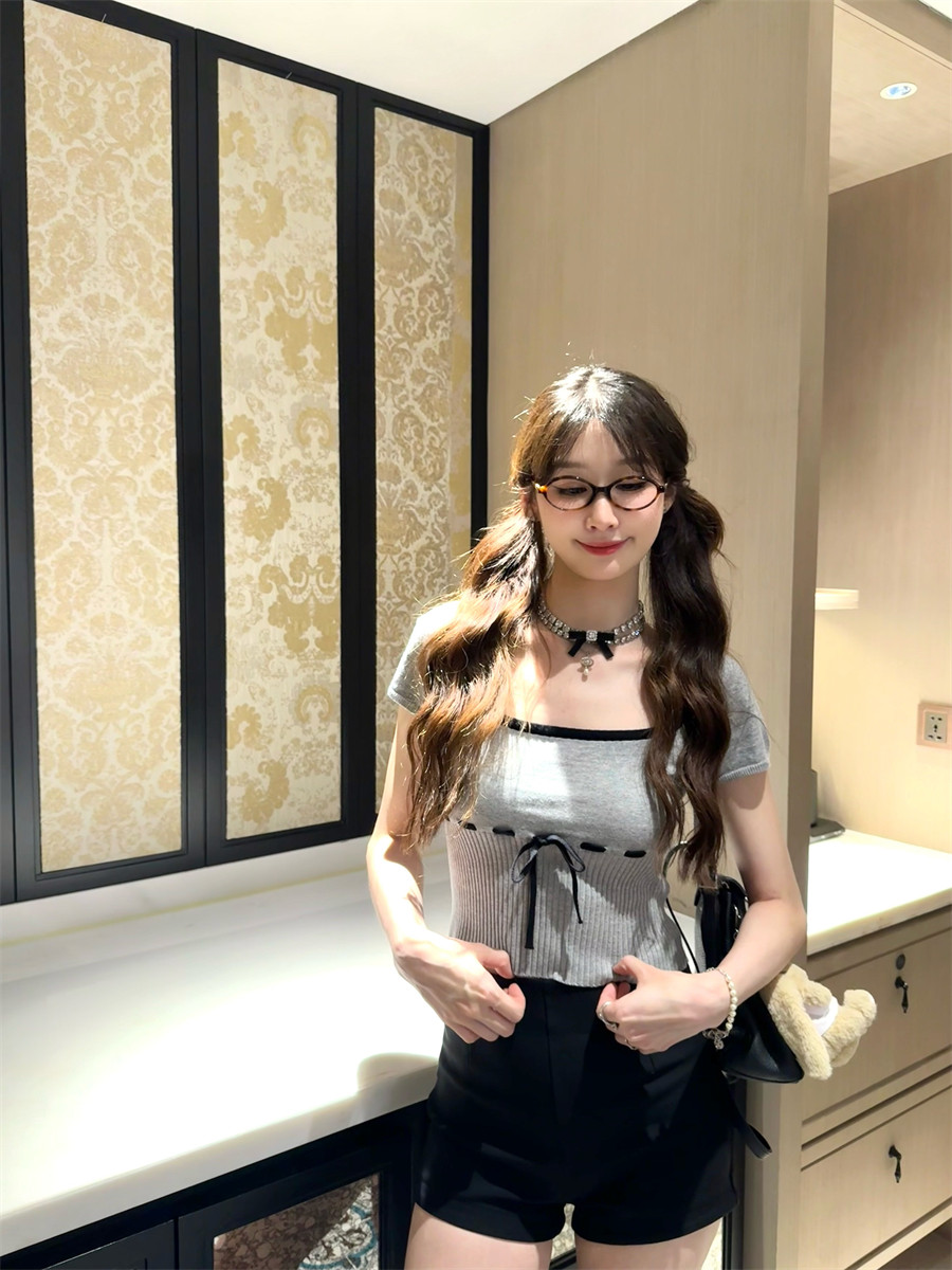 胸前的撞色抽繩還可以系個蝴蝶結,geng顯俏皮可愛