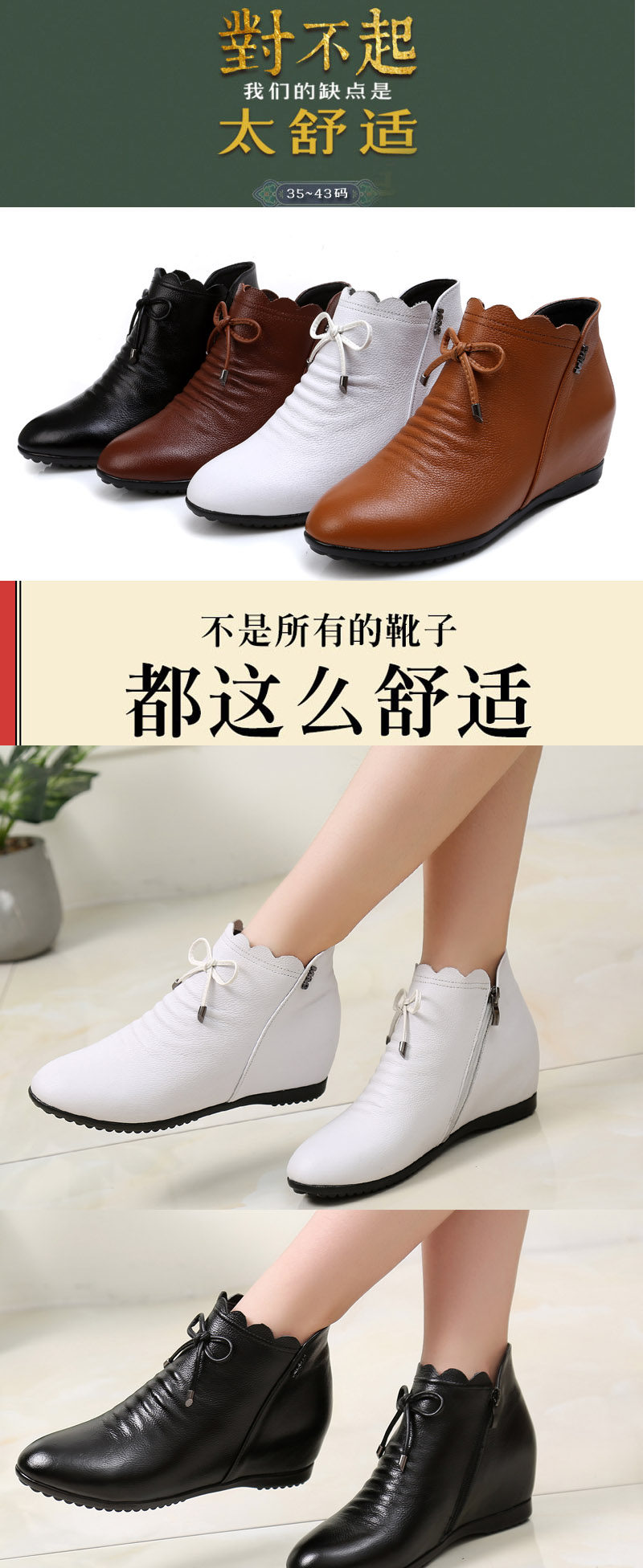 休閑舒適優質頭層牛皮 時尚小圓頭內增高3厘米 鞋底1厘米 平底鞋的腳感 走路不累腳