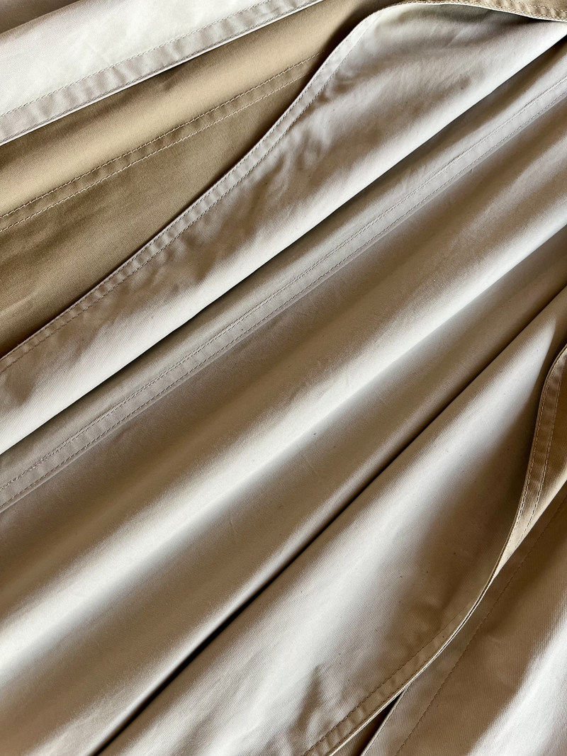 【平鋪直敘】 VB代工廠原廠元單,售價1w3,客供剩余面料,共做出43件。這件跟2020年售賣的bv風衣面料很類似,是日本公司客供面料,售完無法翻單。bv風衣的時髦和現代設計感無可挑剔,所以一直想再翻單,代工廠也用其他面料翻單售賣。面料質感檔次都在一樣水準。但bv風衣的設計對面料輕盈度是有特性要求。有些產品,改變它的面料,只復制它的設計,也可以穿,但也沒了意義。 |