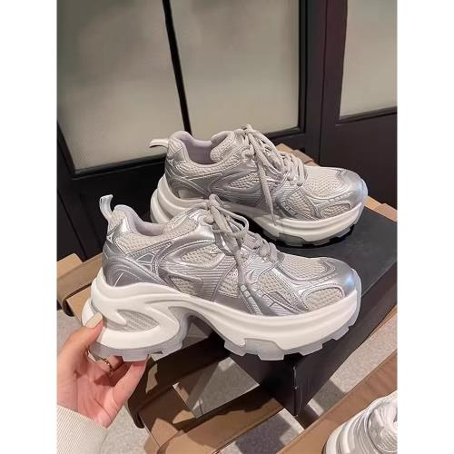 香港透氣真皮休閑運動鞋女2025新款趙露思同款閃耀銀河厚底老爹鞋