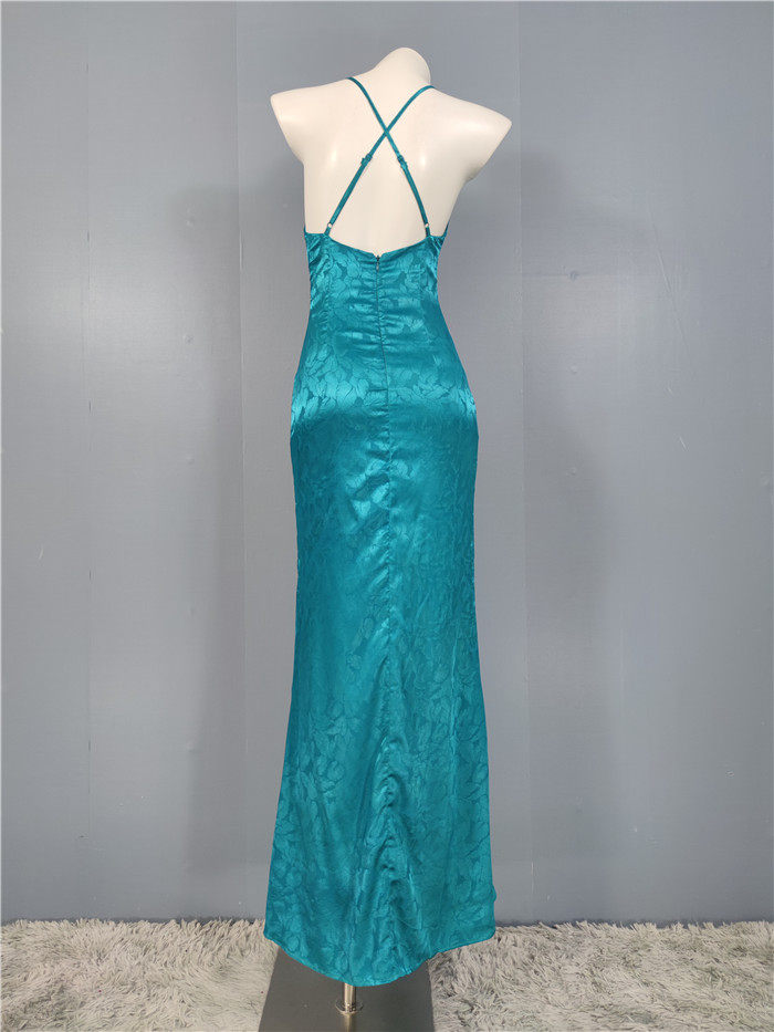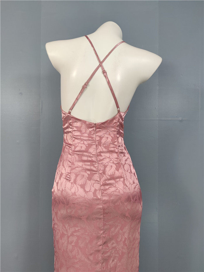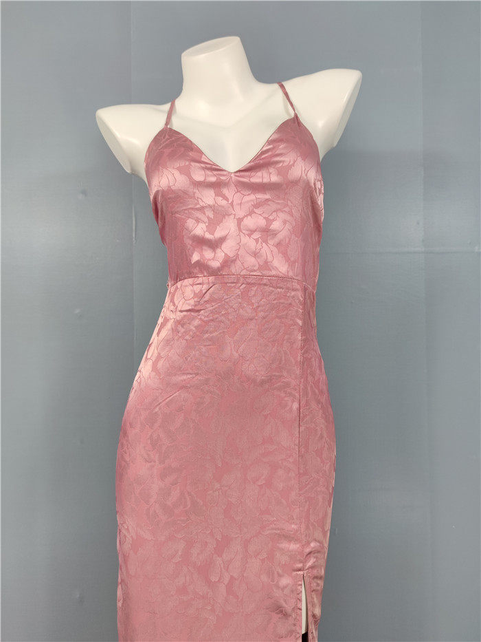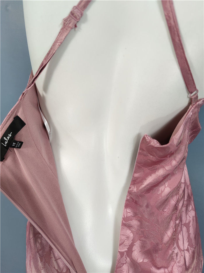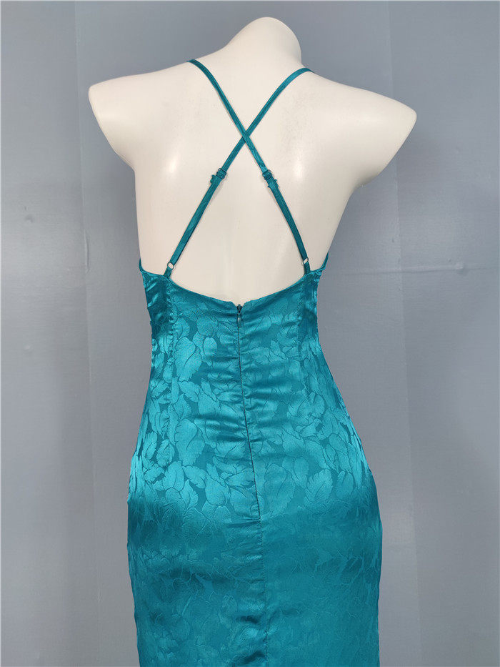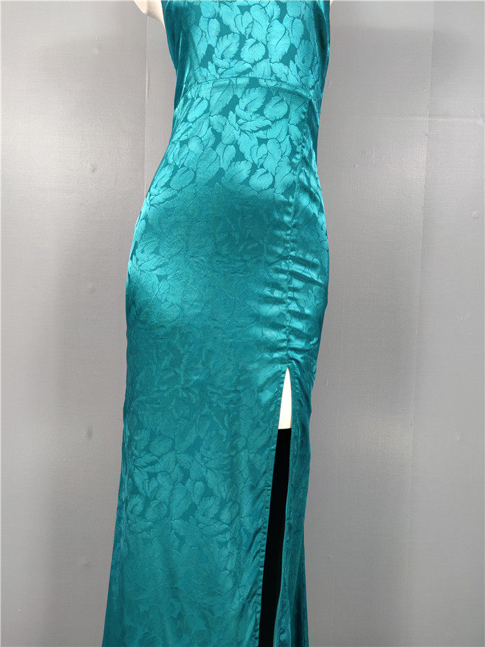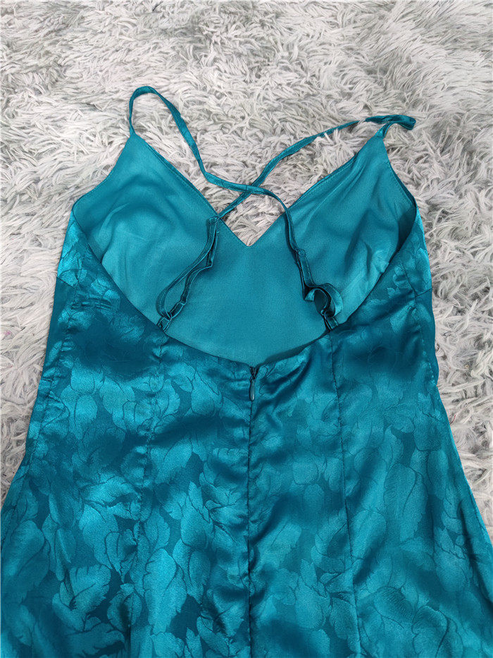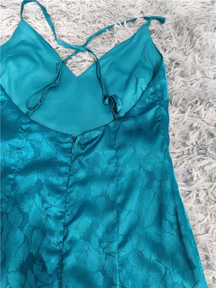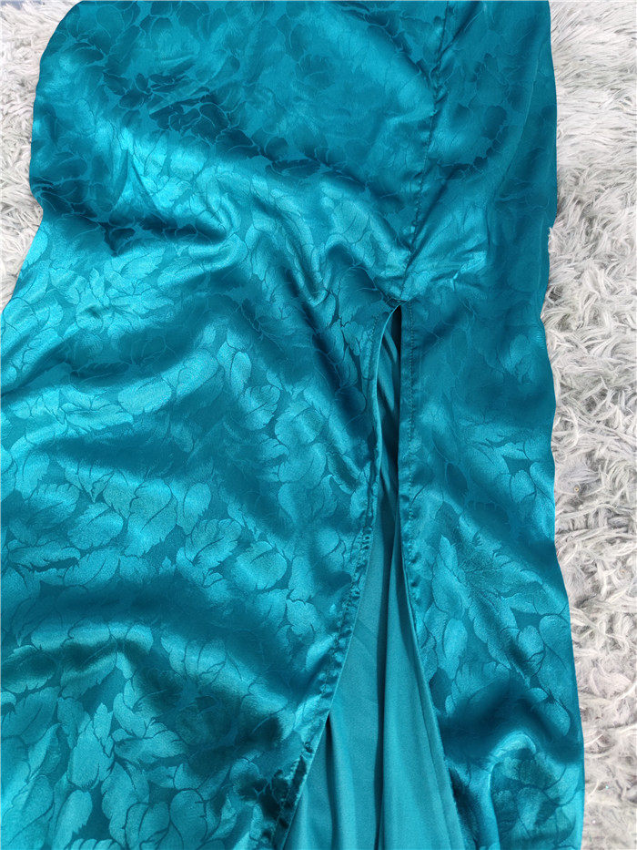 外貿單純欲LU家緹花精美吊帶V領性感開叉修身名媛個性唯美連衣裙
