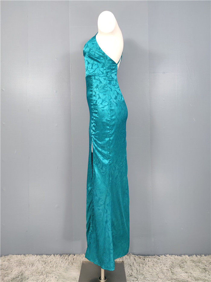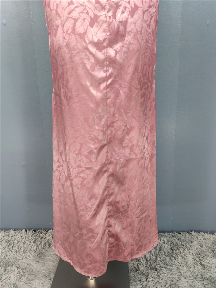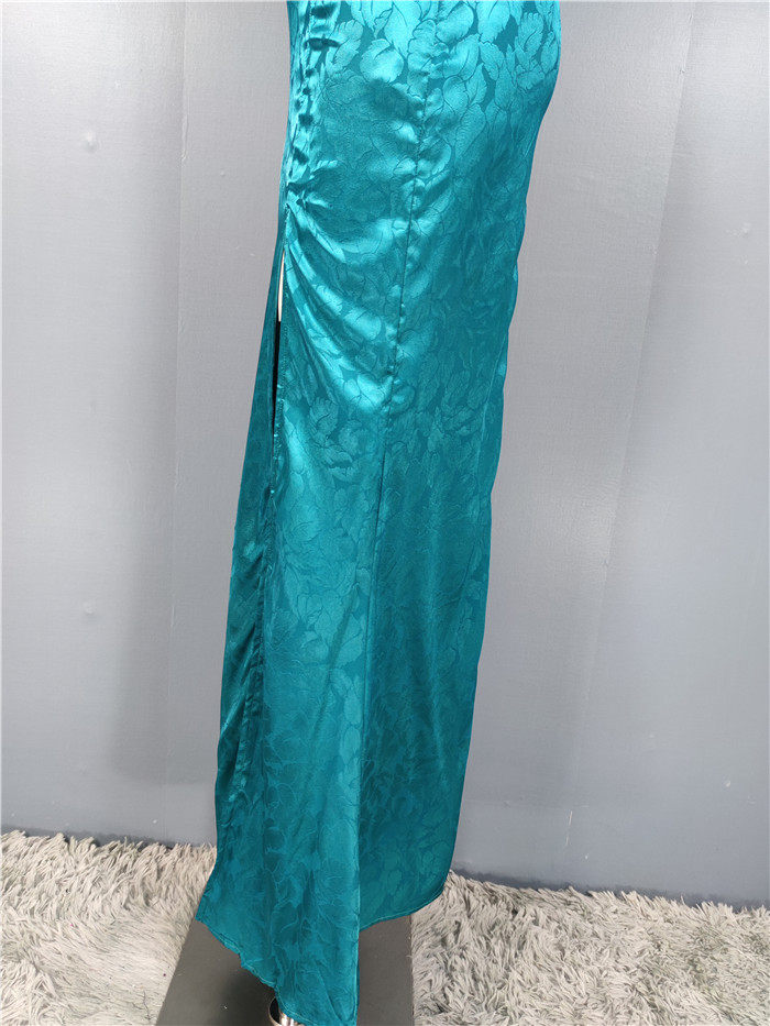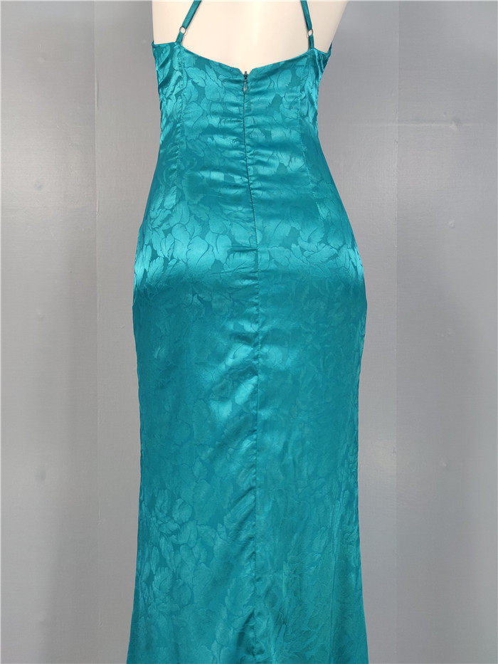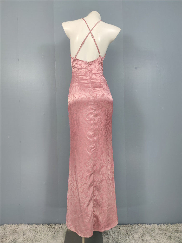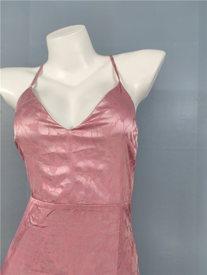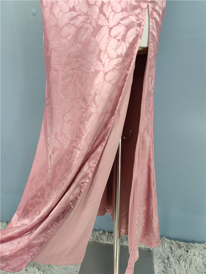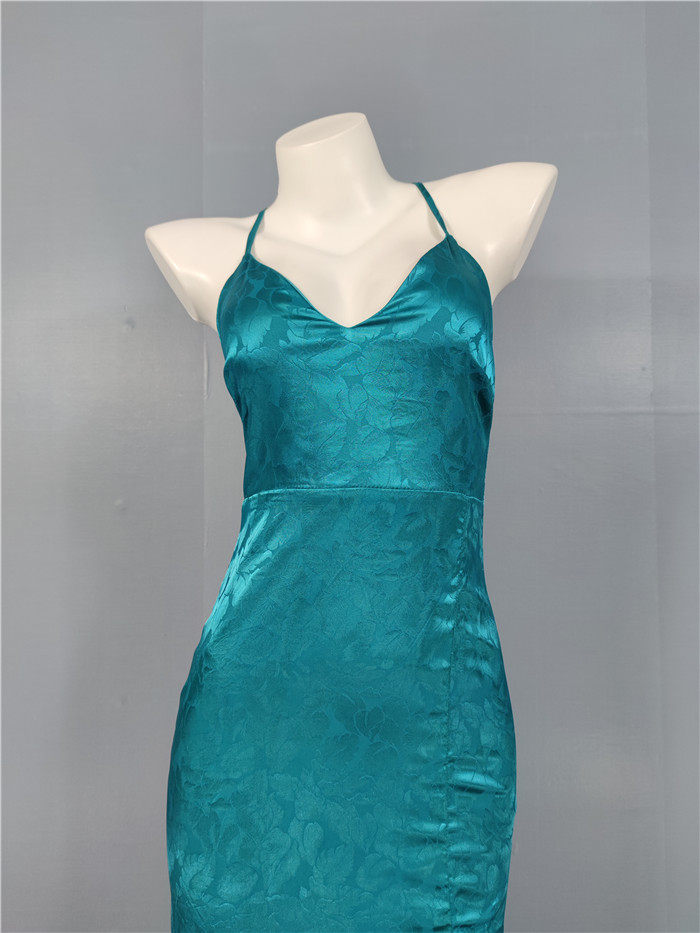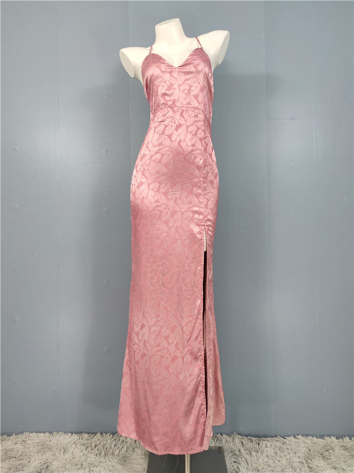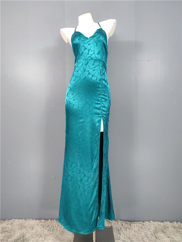 外貿單純欲LU家緹花精美吊帶V領性感開叉修身名媛個性唯美連衣裙