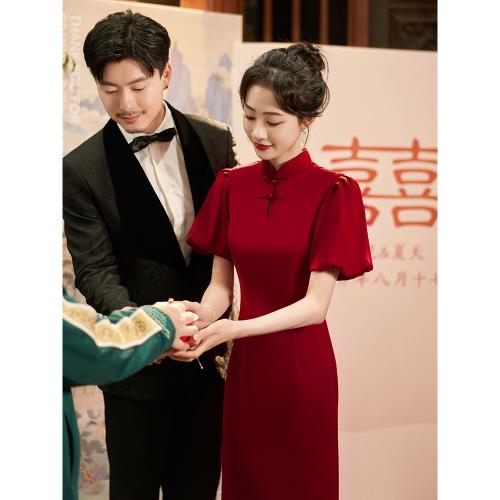 新中式旗袍敬酒服新娘高級感結婚紅色連衣裙回門平時可穿訂婚禮服