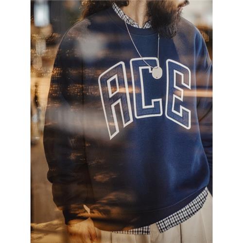 馬登工裝美式休閑字母刺繡衛衣學院風加厚加絨保暖圓領上衣男春