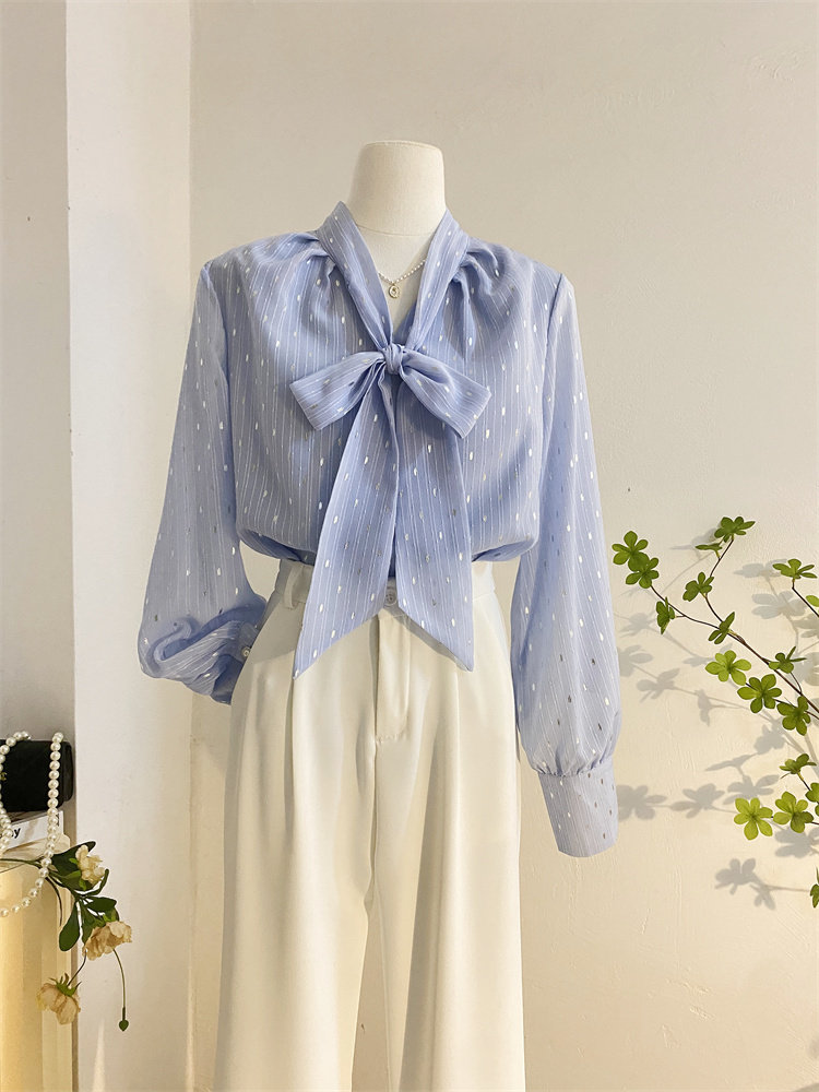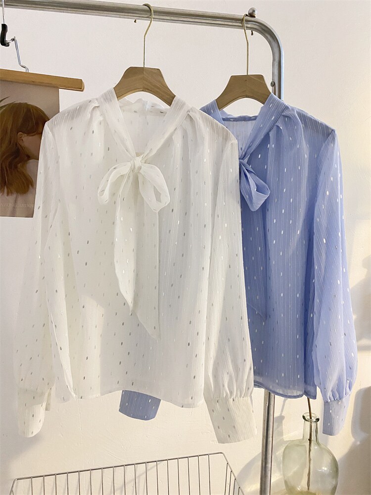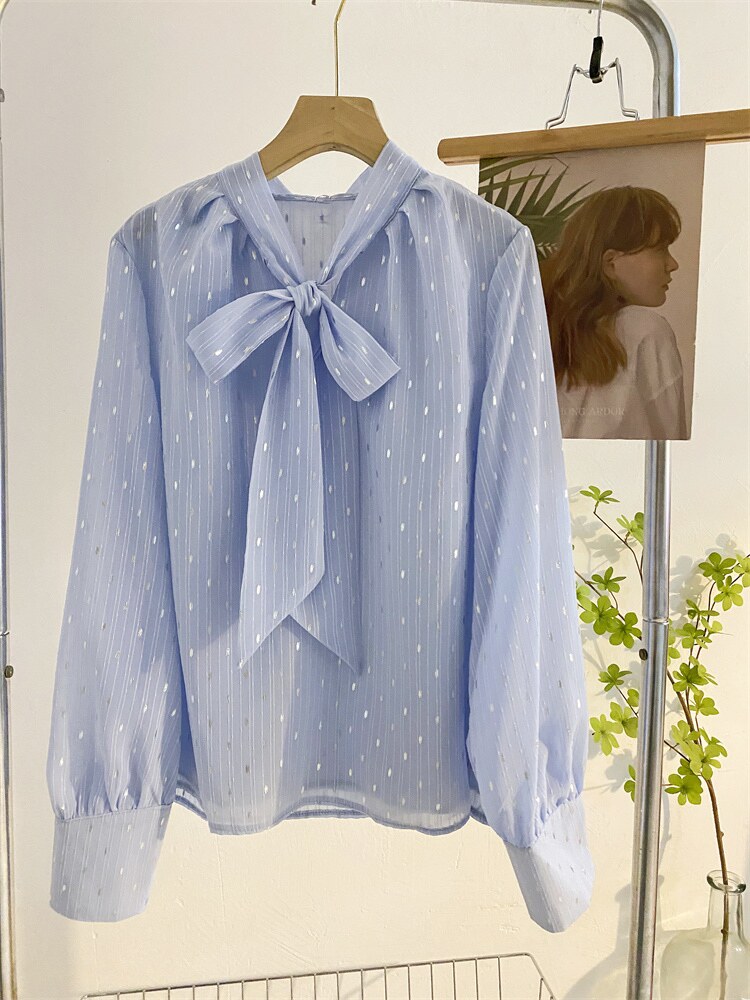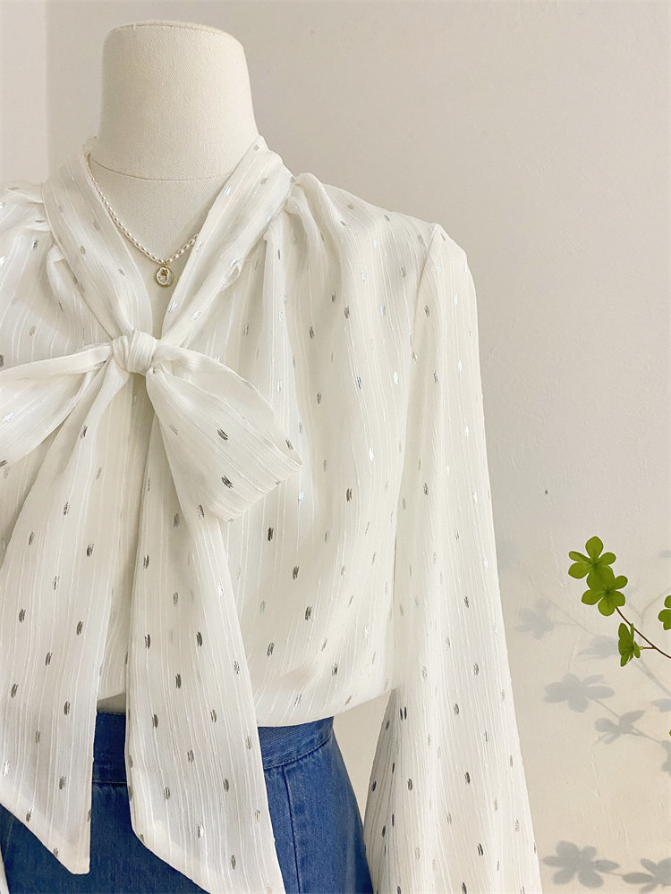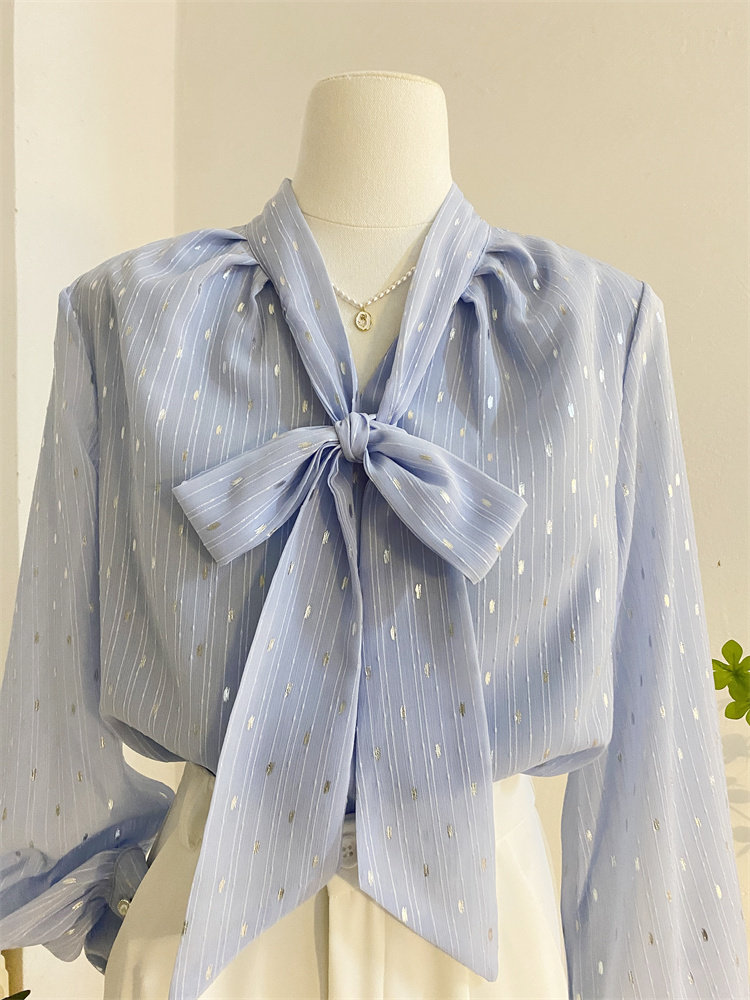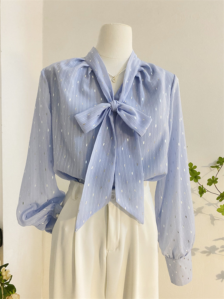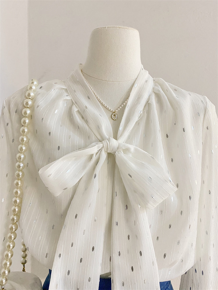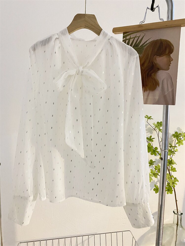 溫柔氣質系帶蝴蝶結雪紡襯衫