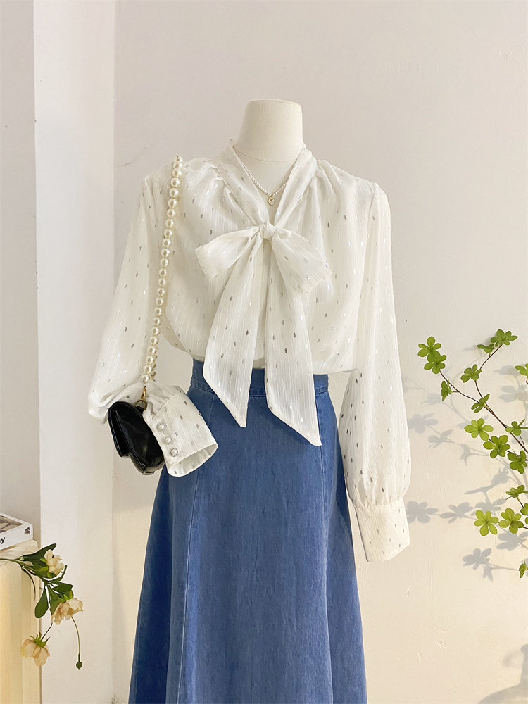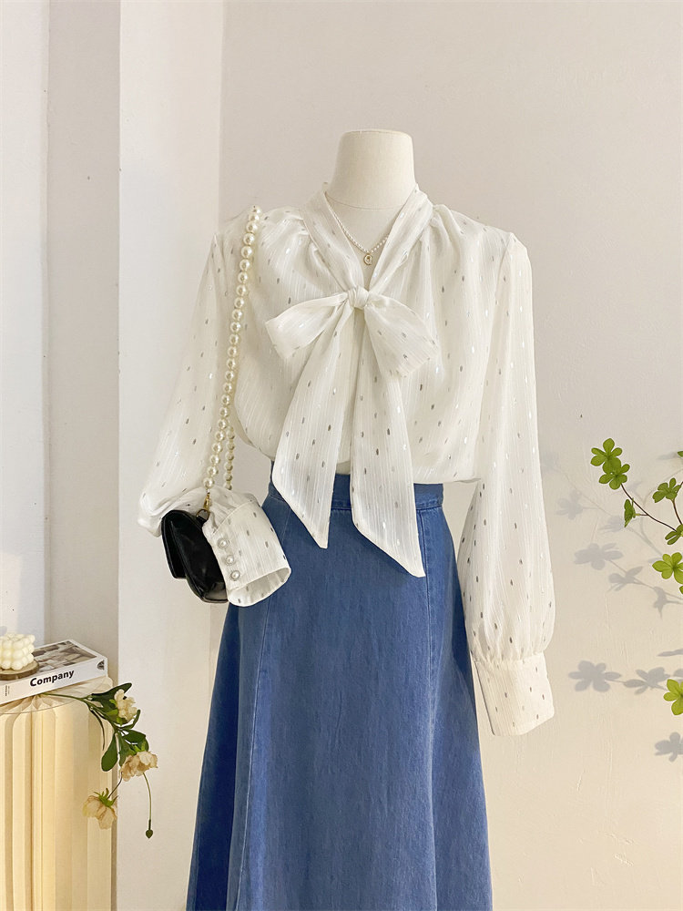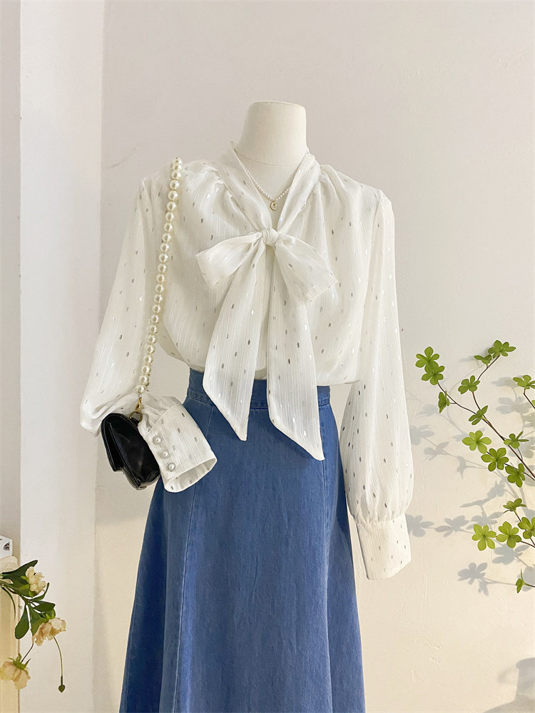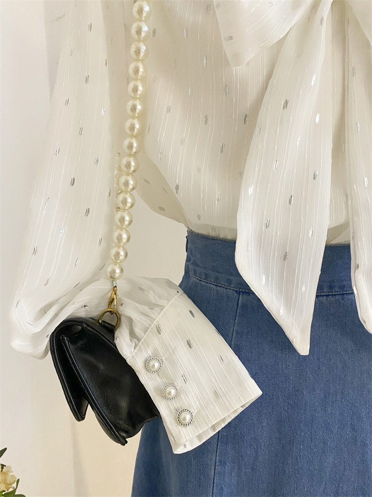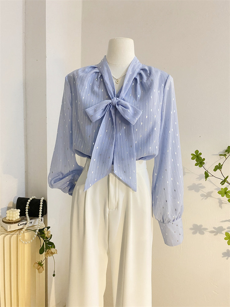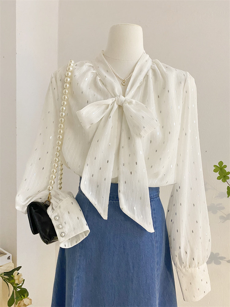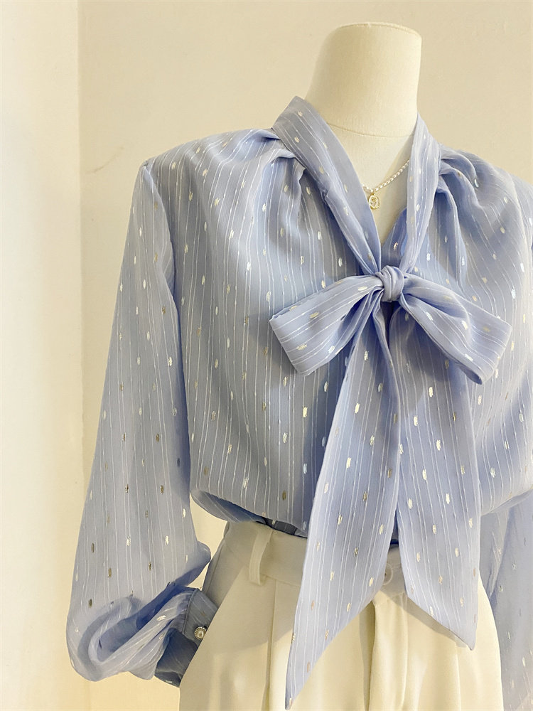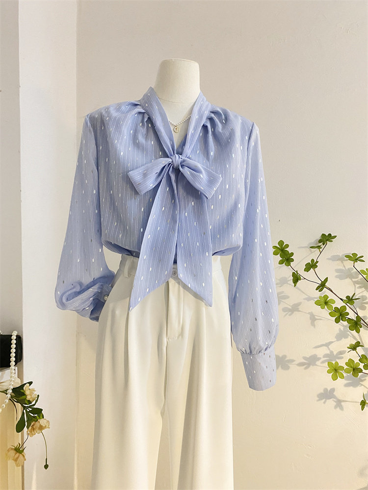 溫柔氣質系帶蝴蝶結雪紡襯衫