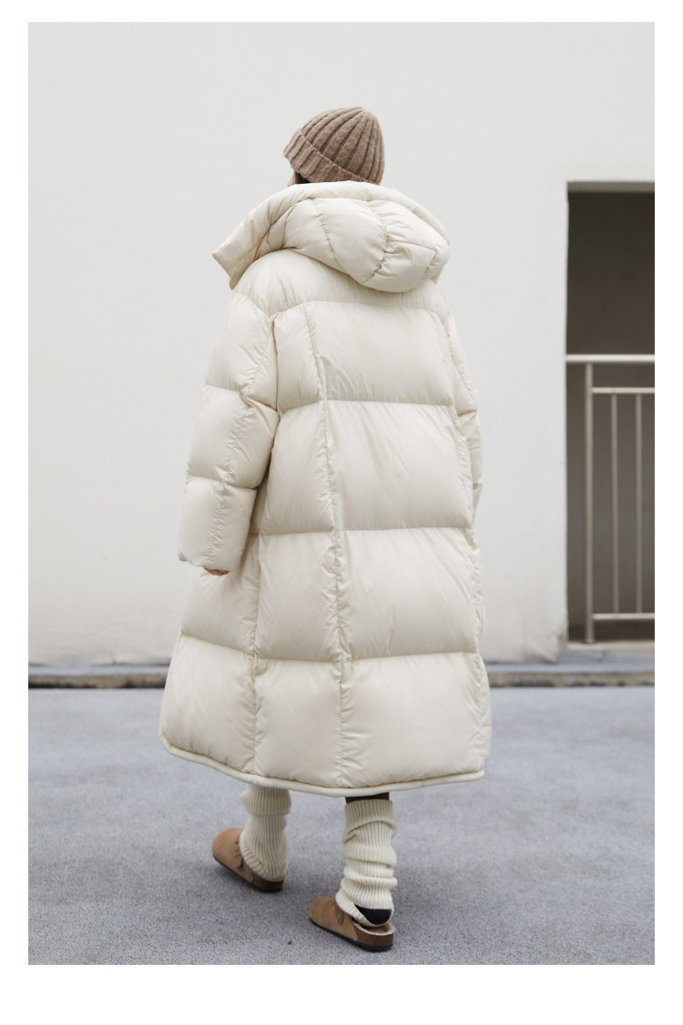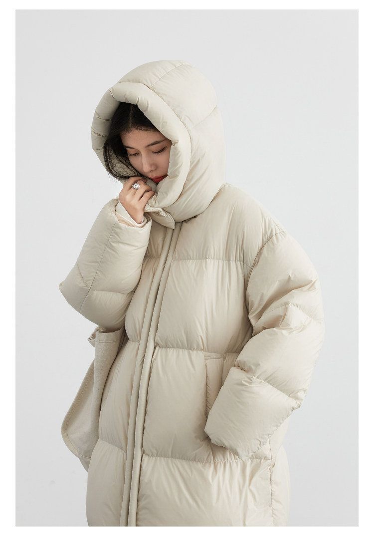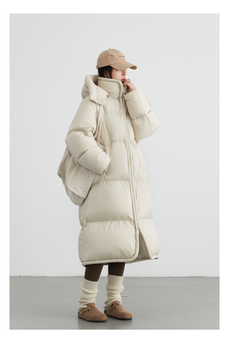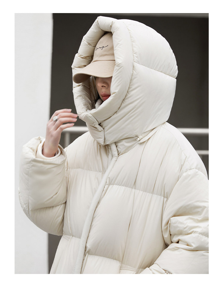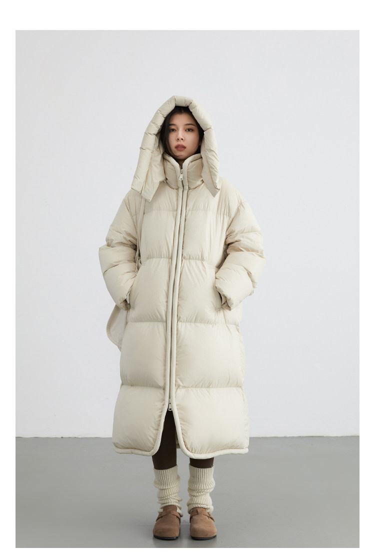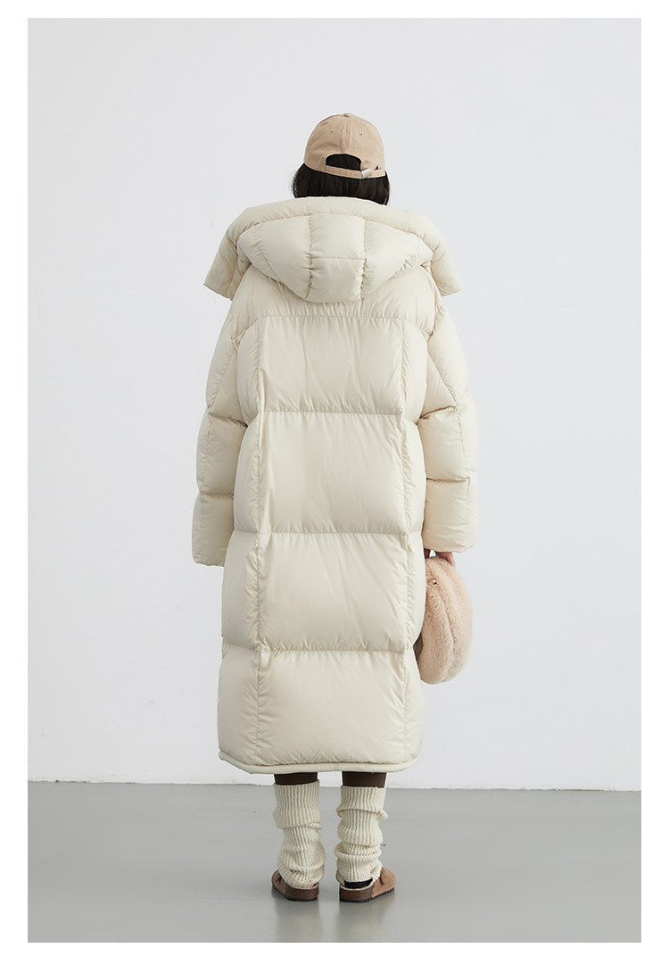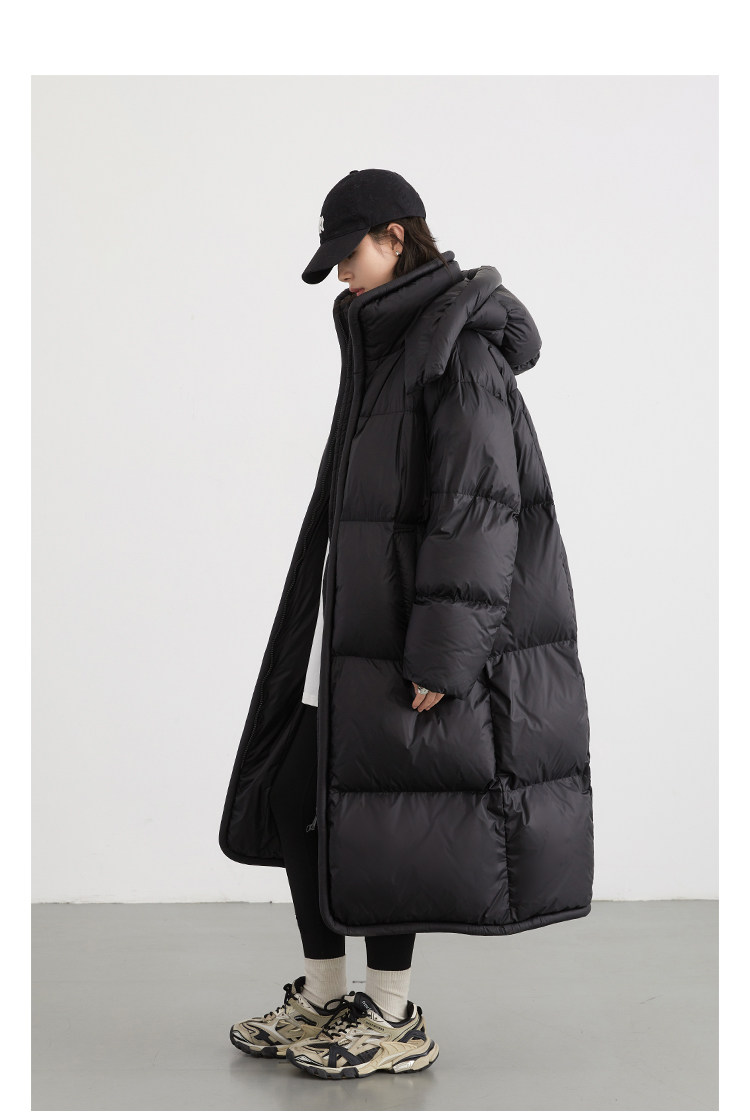 零下也可保命的長款羽絨服來擼~ 長款H型寬松休閑版型對身材的包容性很好 長度及踝設計,腿部怕冷也可以防風保暖 從頭部到腿部給足溫暖守護,東北姐妹放心入!