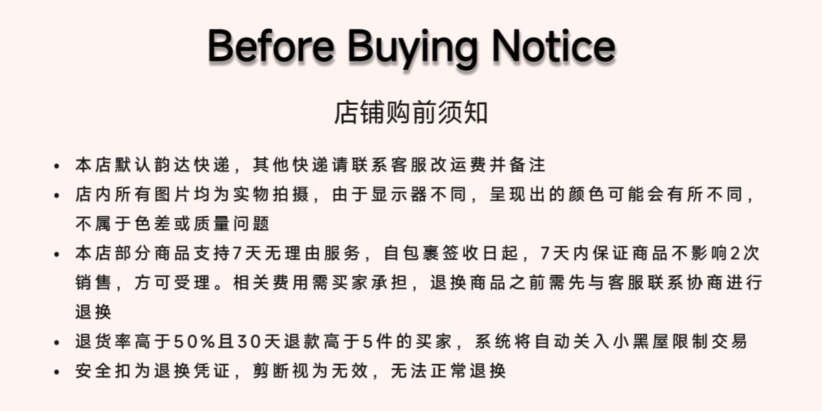 1. 本人了解並接受海外代購的特殊性,並確認不會因規則中所列條款(包括但不限於:商品不可取消、折價券使用規則、不可控因素導致訂單取消等)而要求商家賠償或補償。