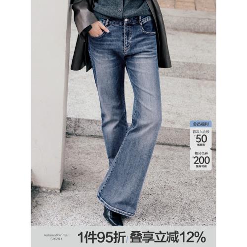 JNBY/江南布衣春秋牛仔長褲女純色休閑通勤復古喇叭褲子5O7E12060