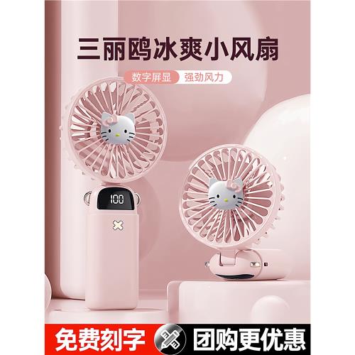 三麗鷗手持小風扇可愛便攜式隨身小型學生辦公室桌面兒童USB制冷充電風扇迷你超長續航2025新款掛脖上課靜音