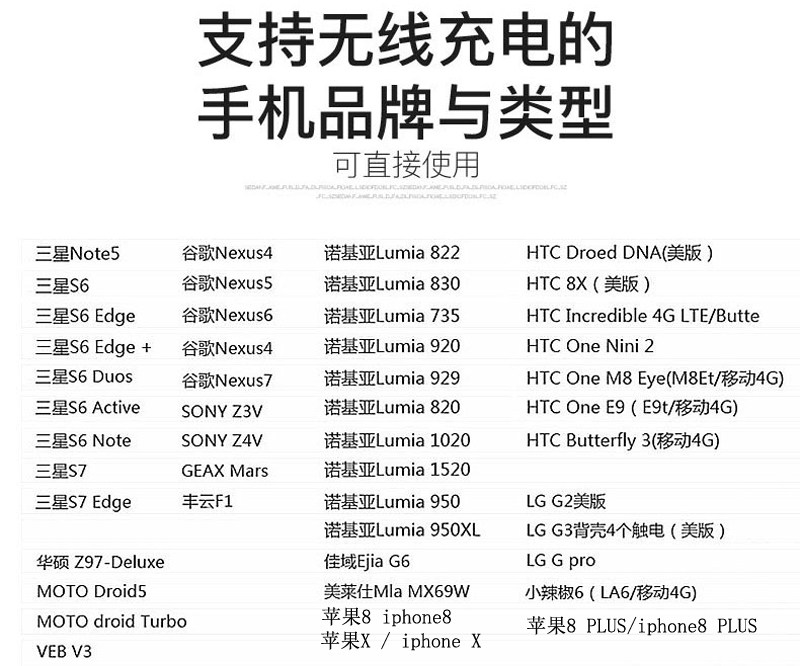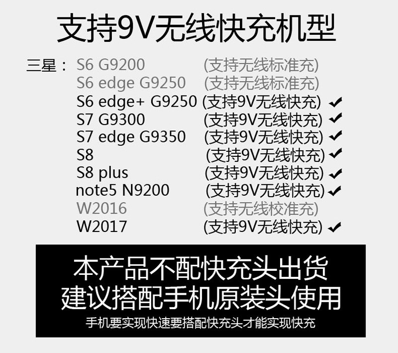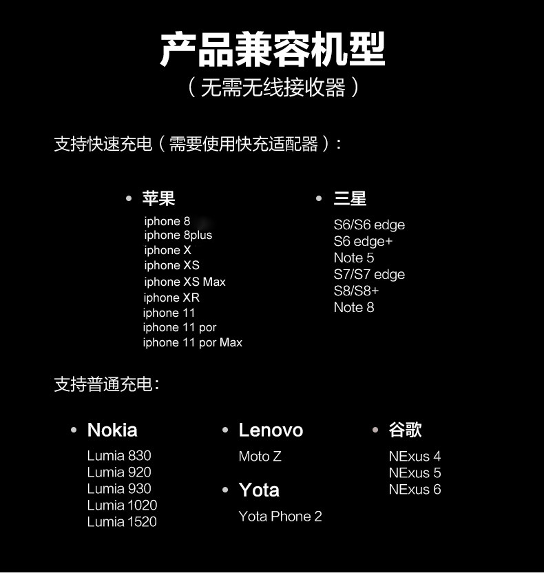 注意:如不支持無線充的手機要配合接收器使用(本產品不帶接收器)