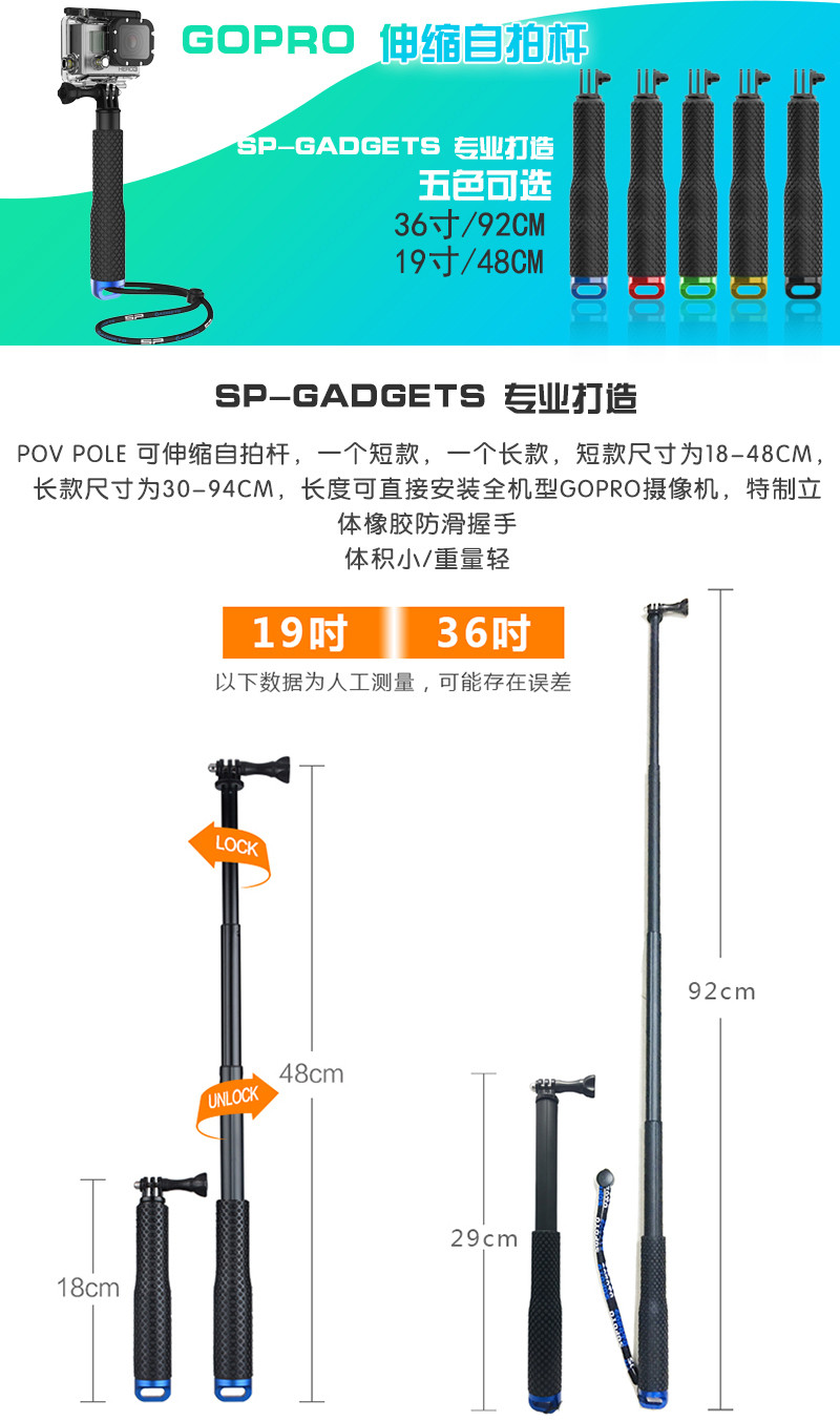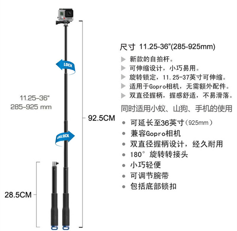3、本產品只是自拍桿,不包括防水盒、運動相機等其他配件。