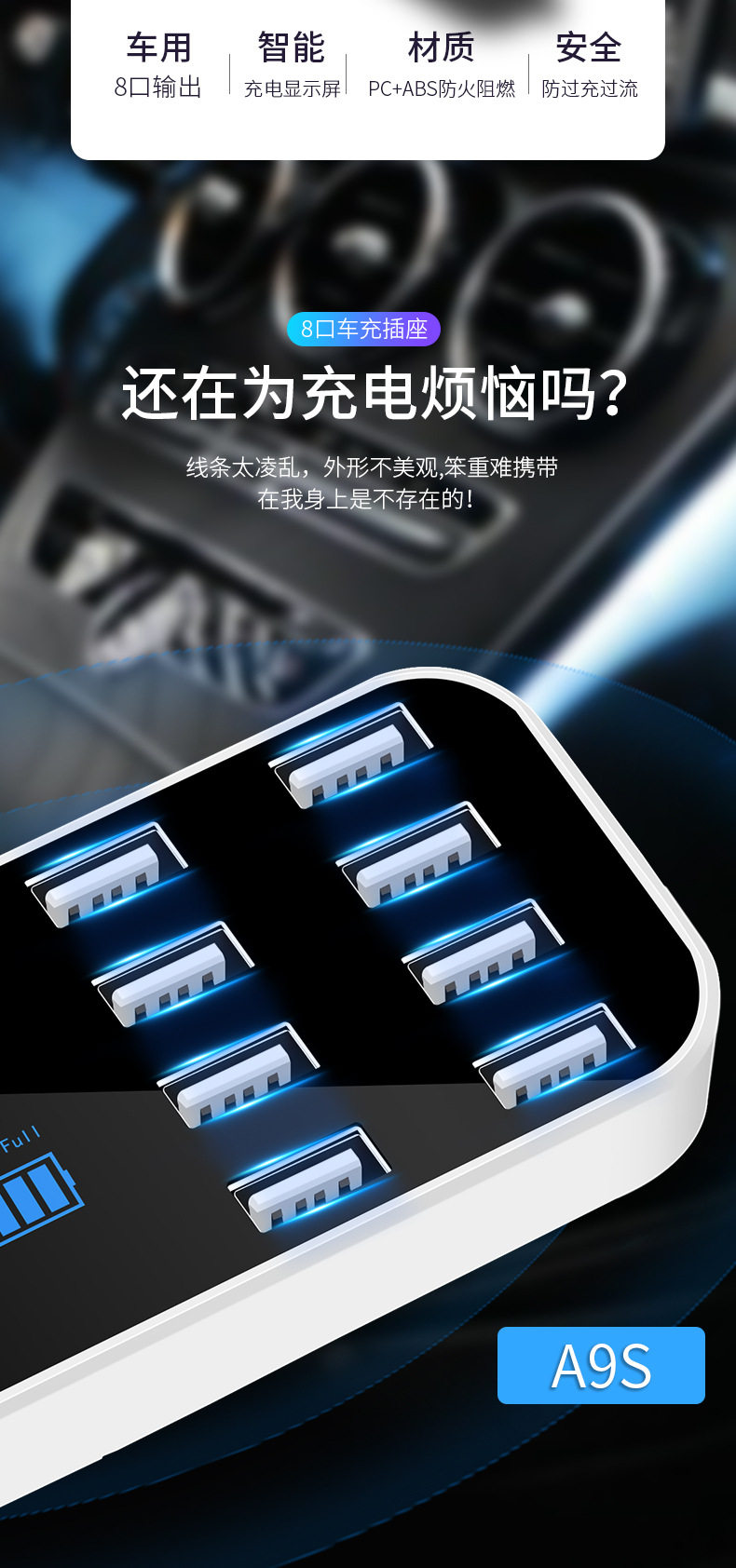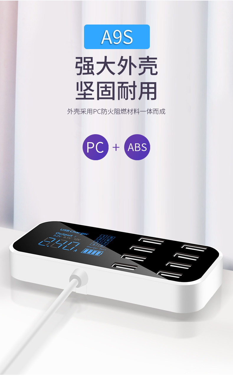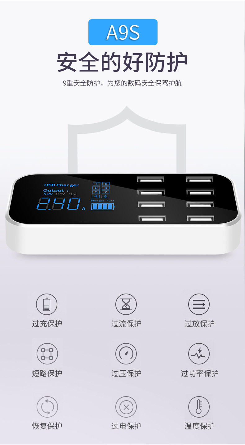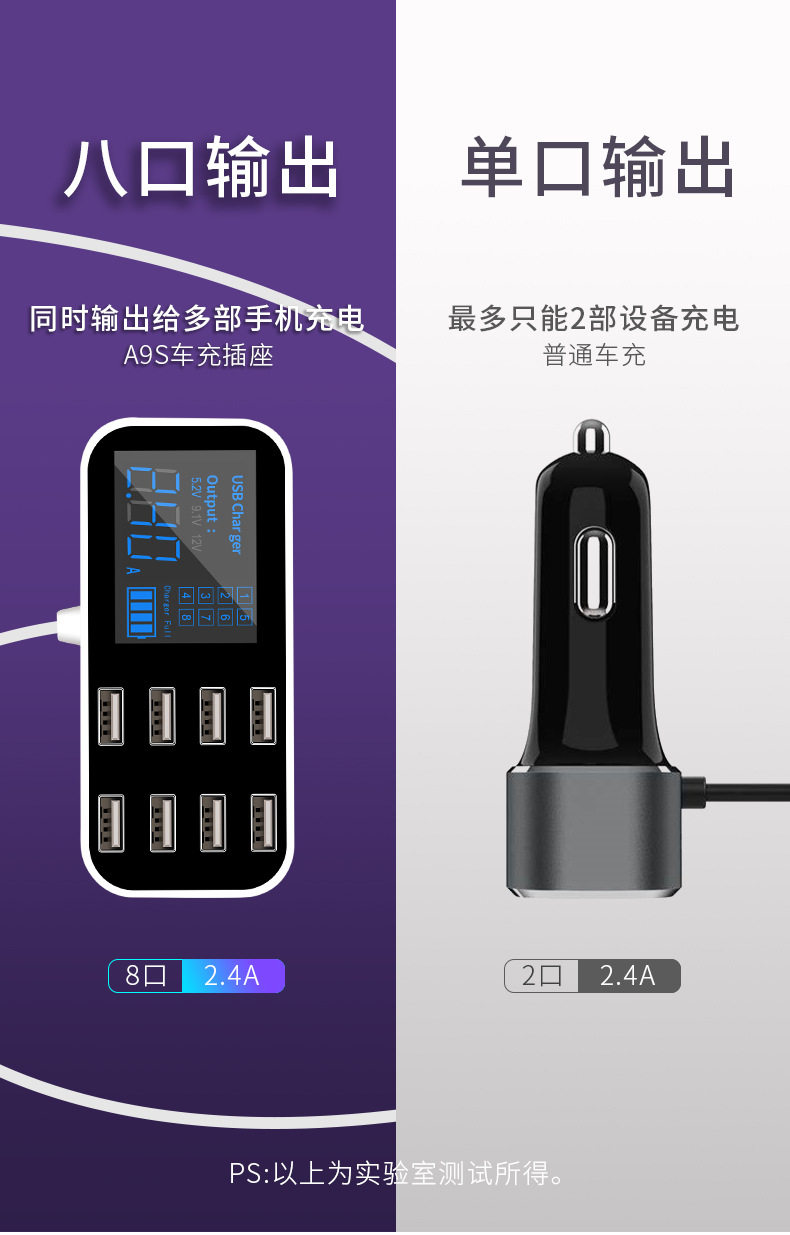 產品名稱:8口USB車載顯示充電器