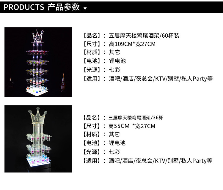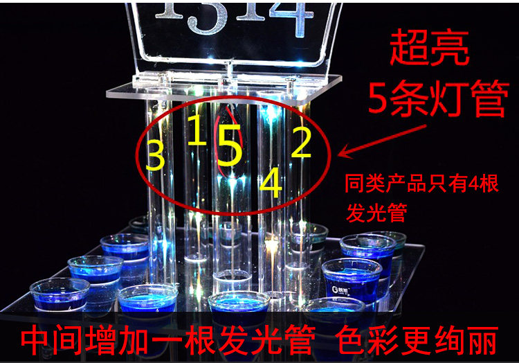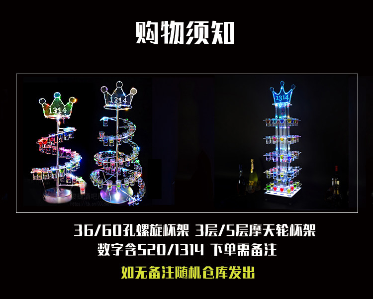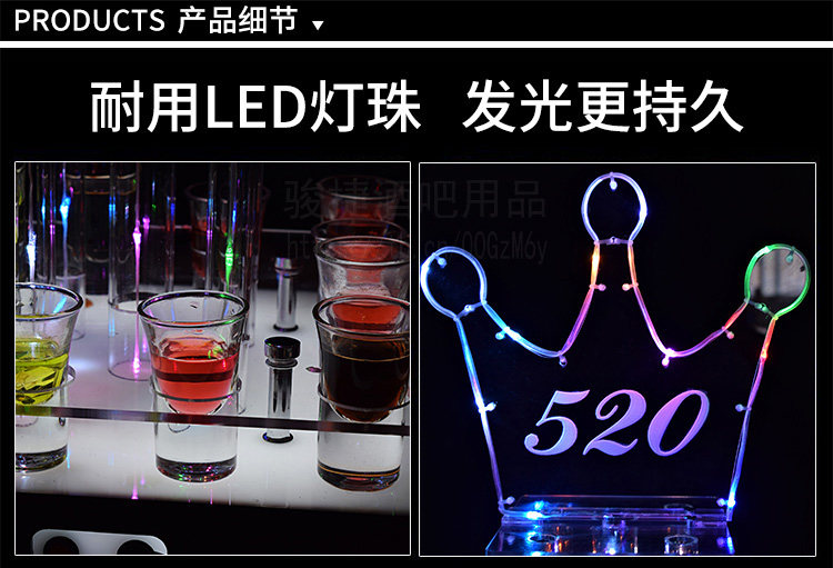 5條高亮發光燈管,架子可放60個子彈杯,以上價格配套1314或520牌子,牌子內容也可免費按要求訂制內容
