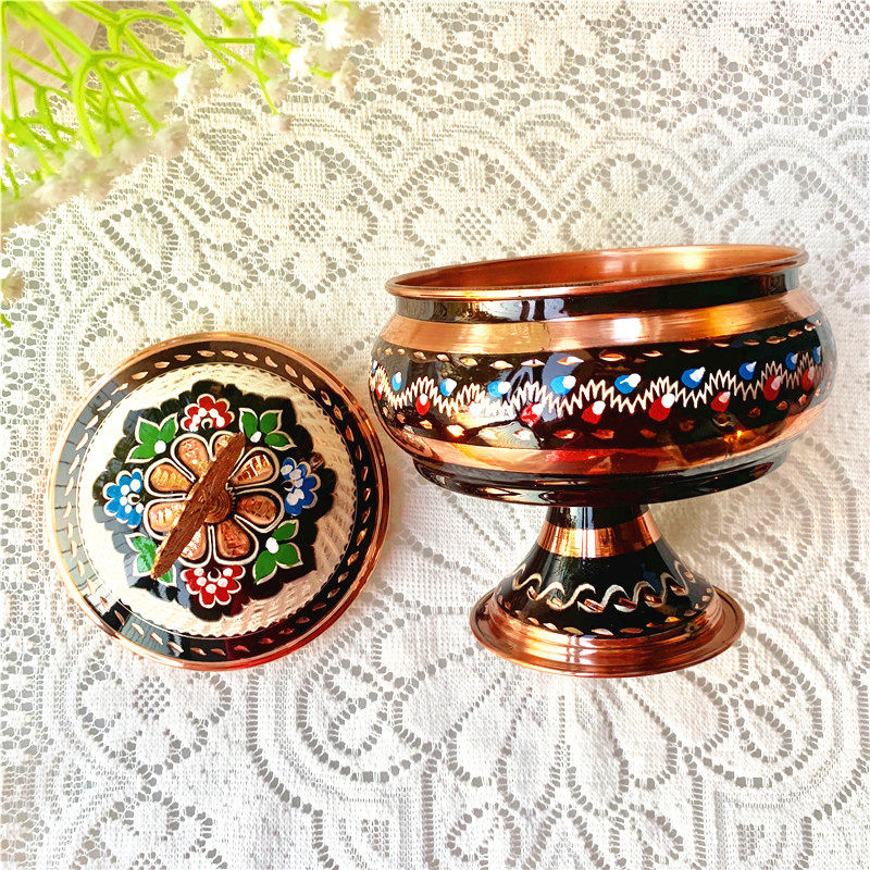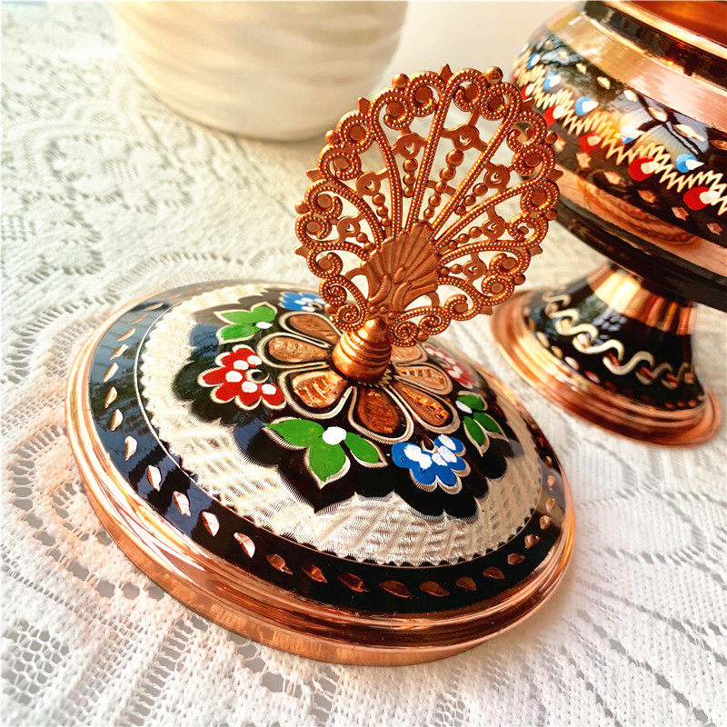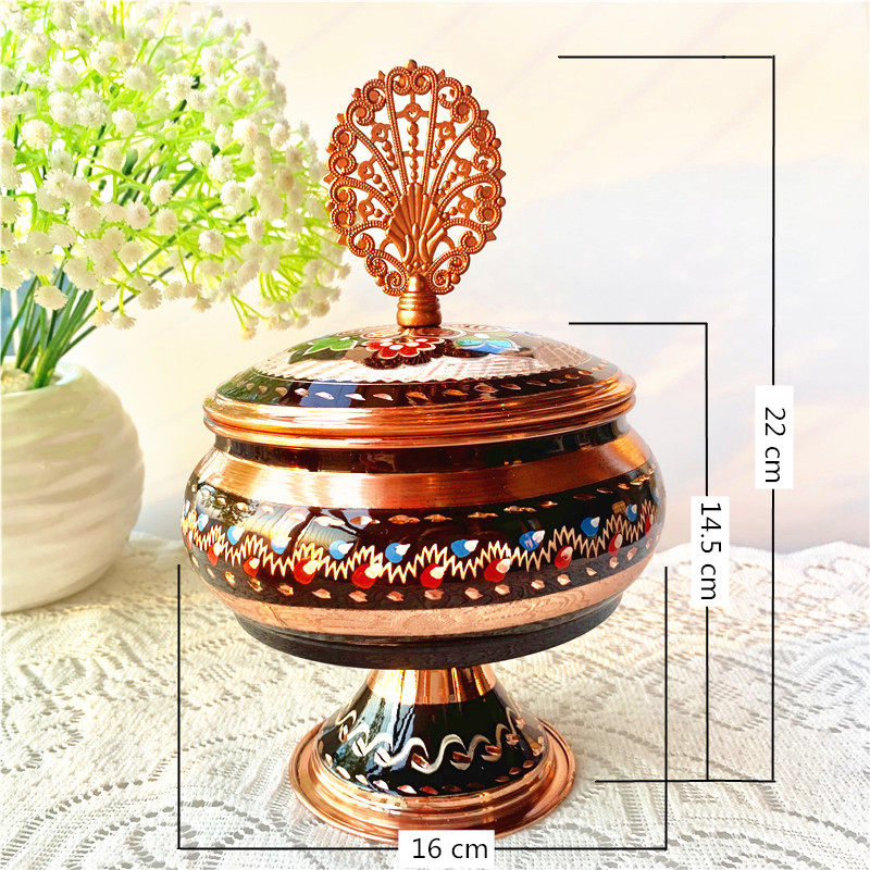 特色:純手工制作、成型、雕花、畫琺瑯彩,設計感十足,具有古奧斯曼帝國特色,容量大,可以放水果、糕點、糖果、干果等等,不用的時候擺放起來也非常有藝術感。