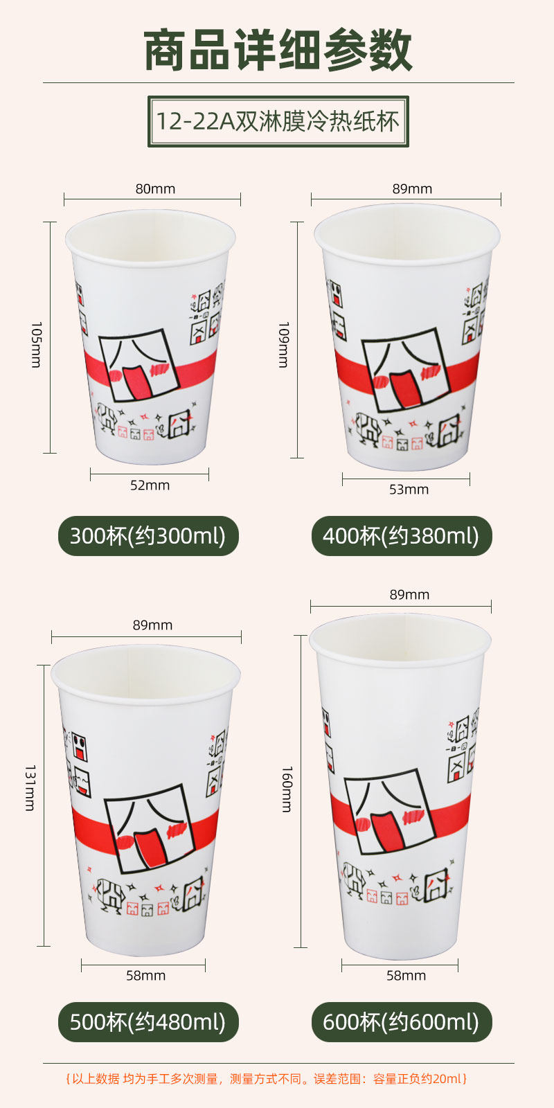 22A(600毫升):上口徑:8.9cm 下底徑:5.8cm 杯高:16cm