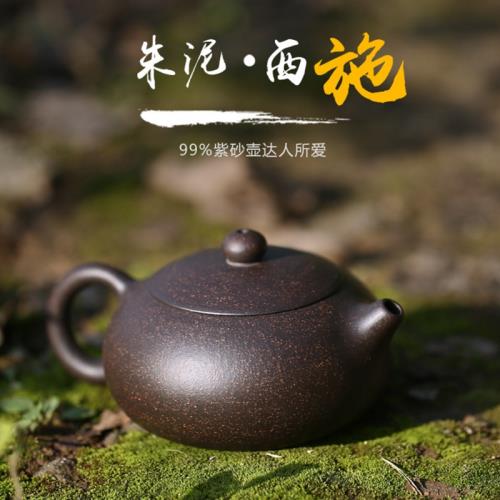 宜興原礦西施紫砂壺茶具黑朱泥壺金剛沙扁西施段泥全手工泡茶水壺
