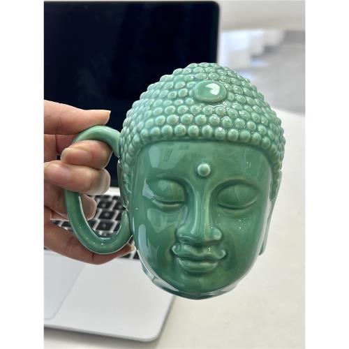 我佛瓷杯稀奇古怪陶瓷佛頭馬克杯送男女生日禮物玉感佛祖喝水杯子