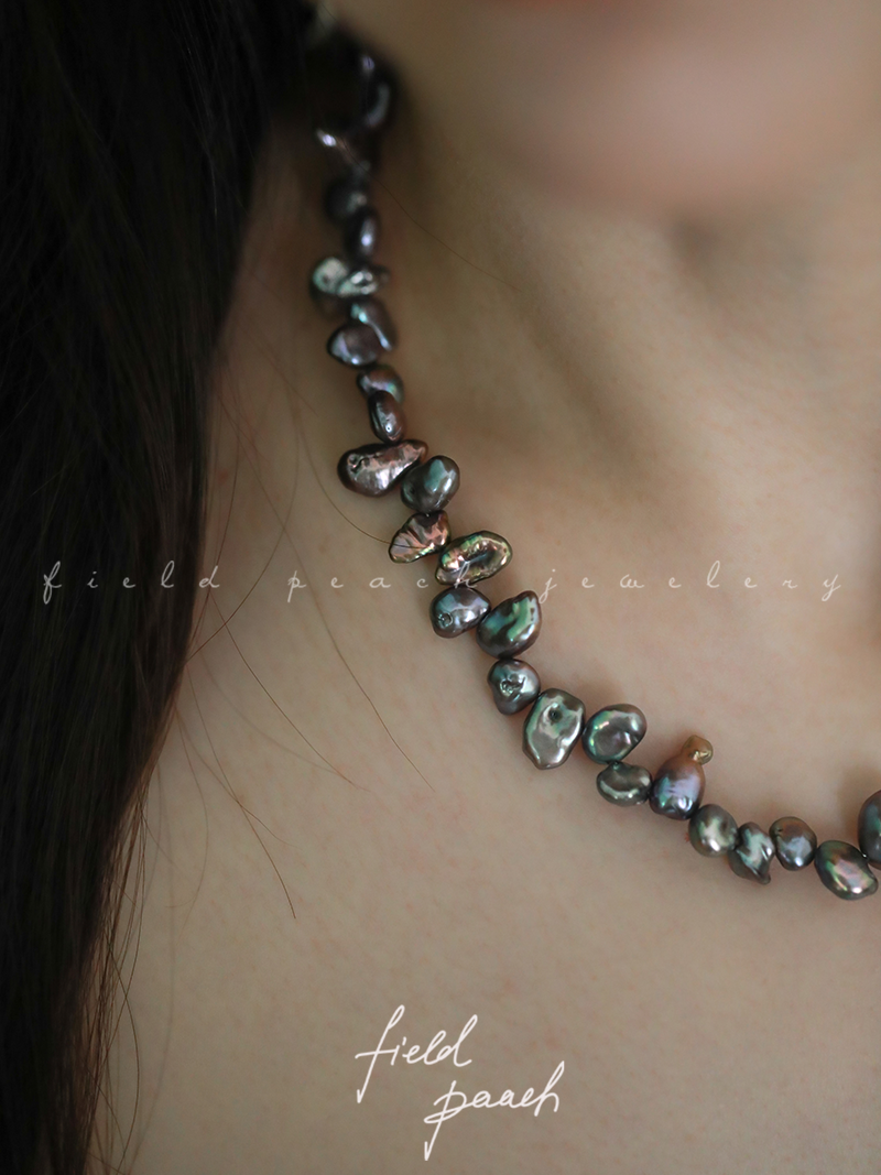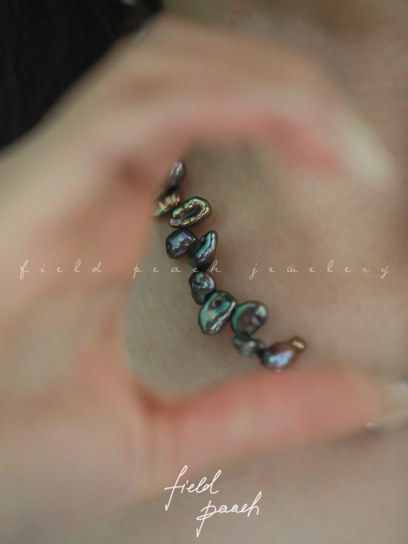 沒想到黑色淡水keshi珍珠的光澤和炫彩也能這么優秀吧