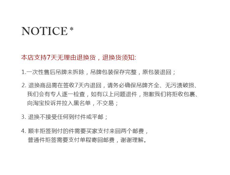 因商品為海外寄送,若拒收包裹,包裹將會退回海關並被銷毀,且訂單款項不會退款。請務必在下單前確認收件地址及商品內容無誤。