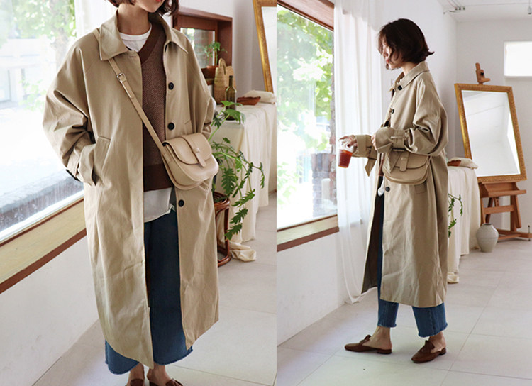 女士風衣女春秋韓版長款寬松顯瘦長袖工裝外套休閑chic早秋外套