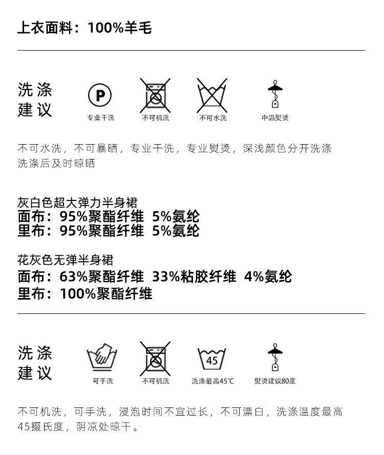 花灰色選用TR面料,手感柔軟,穿著舒適不緊繃