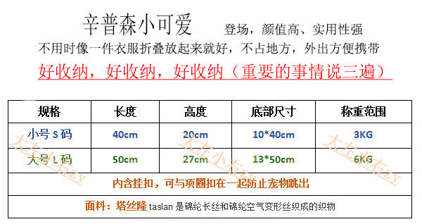 L-長50寬28厚13,適合6公斤以內的寵寶