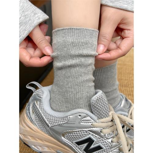 灰色襪子女夏季薄款純棉中筒襪春秋日系堆堆襪白色韓版搭配運動鞋