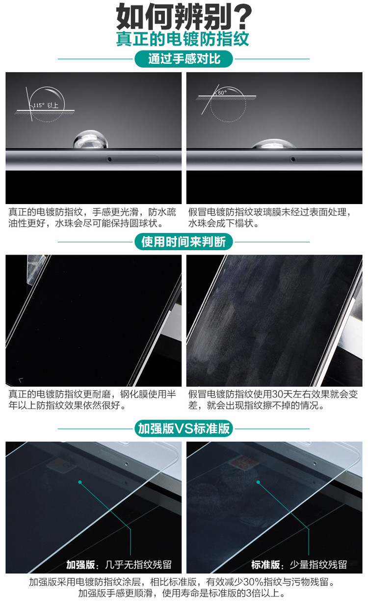 ⑤、膜特性:電鍍防指紋,疏水疏油,順滑,防止碎屏,手感舒服。