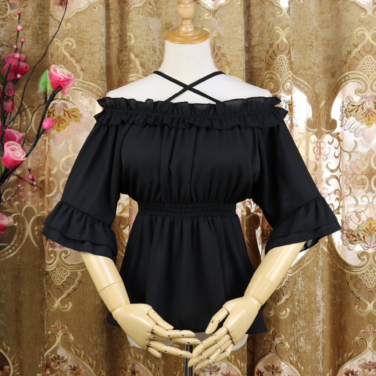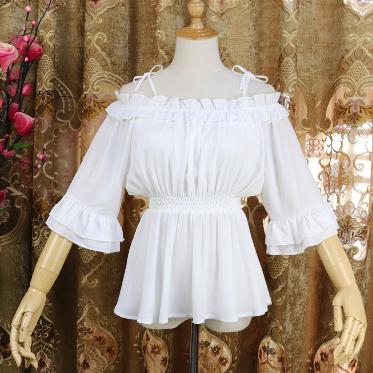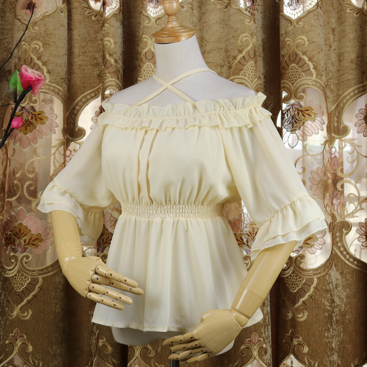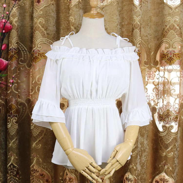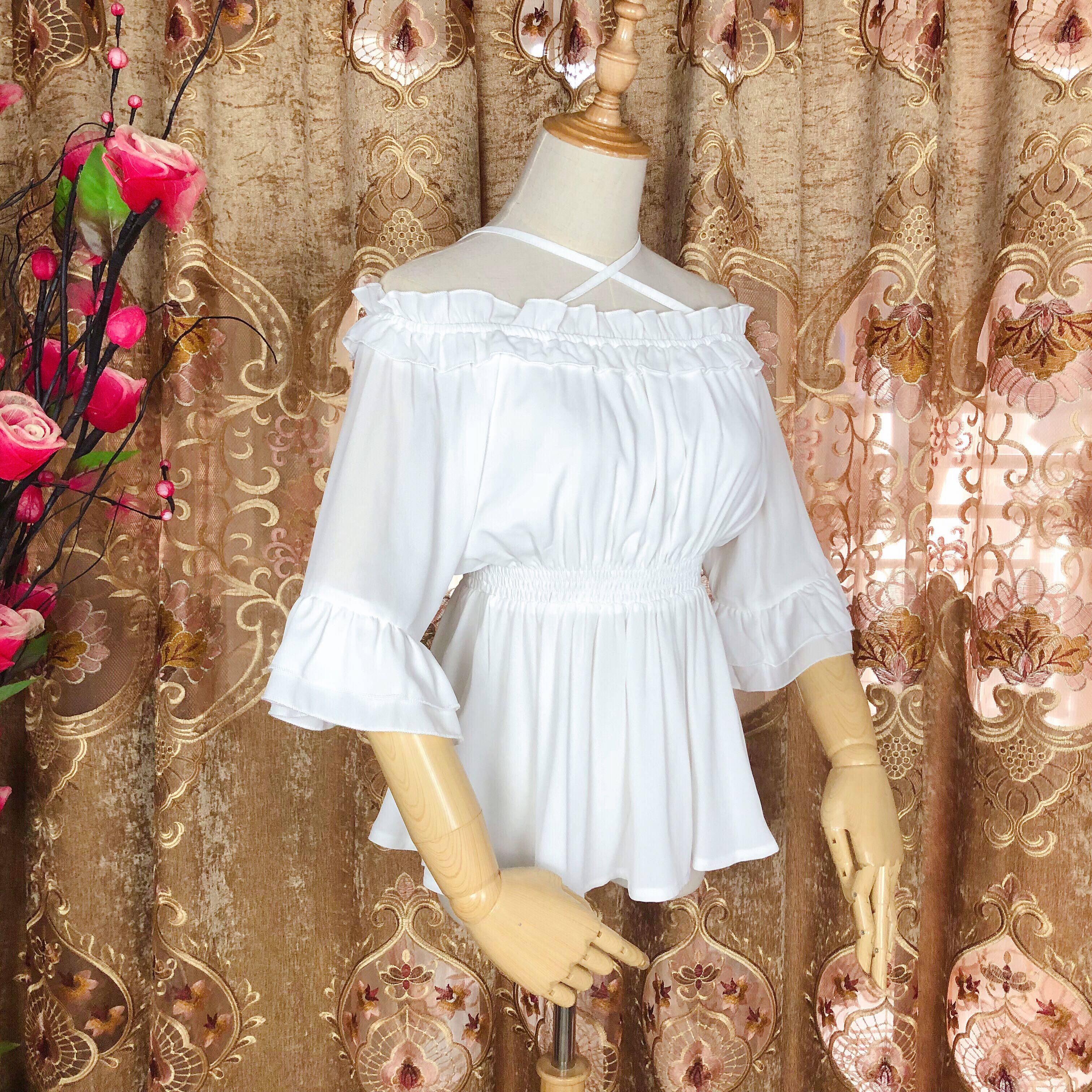衣服面料雪紡,不透哦,胸前有兩層,可以單穿 胸圍100以內可以穿, 這款設計了雙肩帶,可以掛脖也可以當肩帶哦 可以圓領也可以一字領哦 袖子設計為比較舒服的荷葉邊五分袖,滿足小仙女們的不露臂又清涼的需求,美美的,主要是搭配裙子可以不單調,