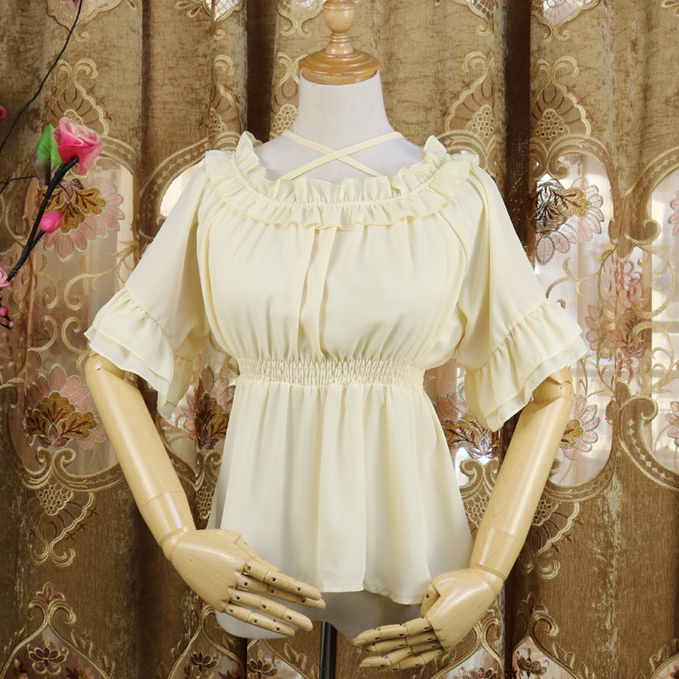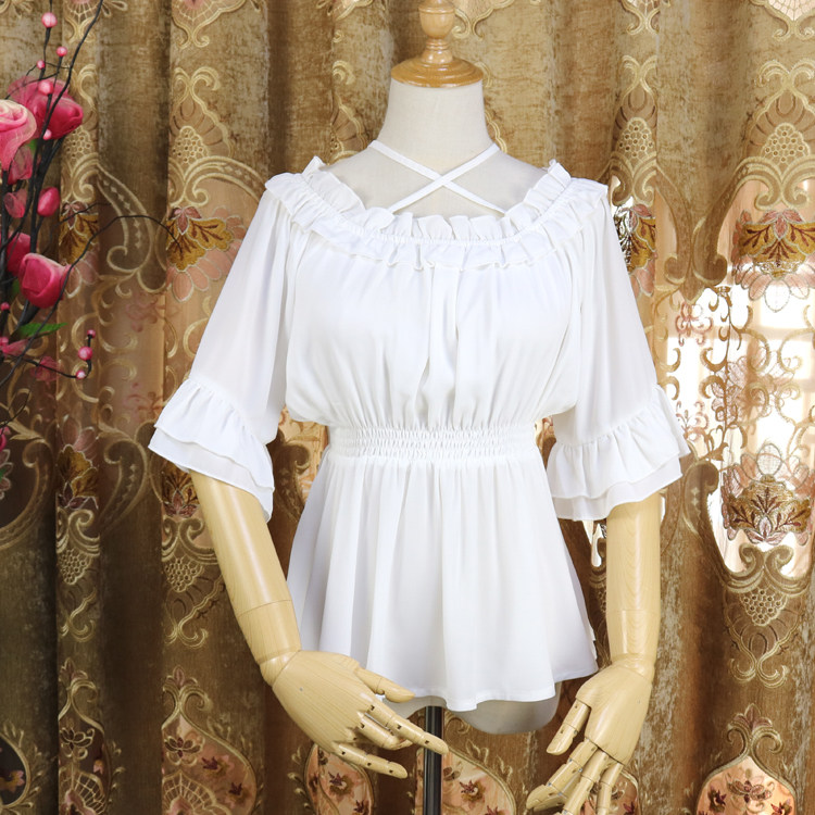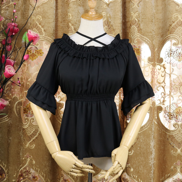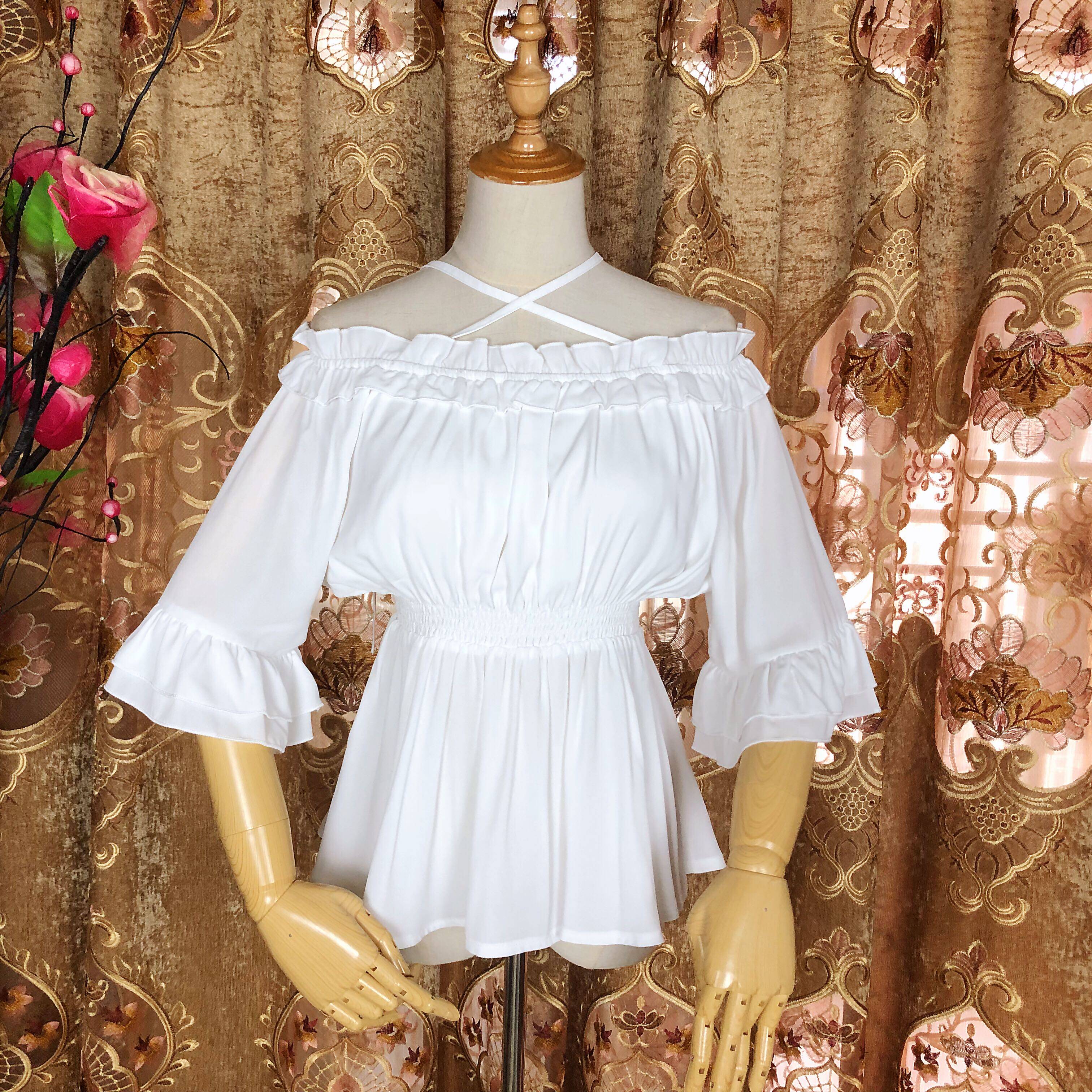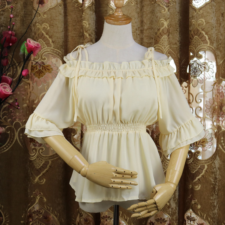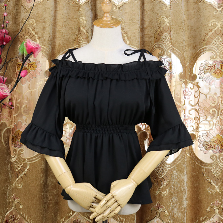 衣服面料雪紡,不透哦,胸前有兩層,可以單穿 胸圍100以內可以穿, 這款設計了雙肩帶,可以掛脖也可以當肩帶哦 可以圓領也可以一字領哦 袖子設計為比較舒服的荷葉邊五分袖,滿足小仙女們的不露臂又清涼的需求,美美的,主要是搭配裙子可以不單調,