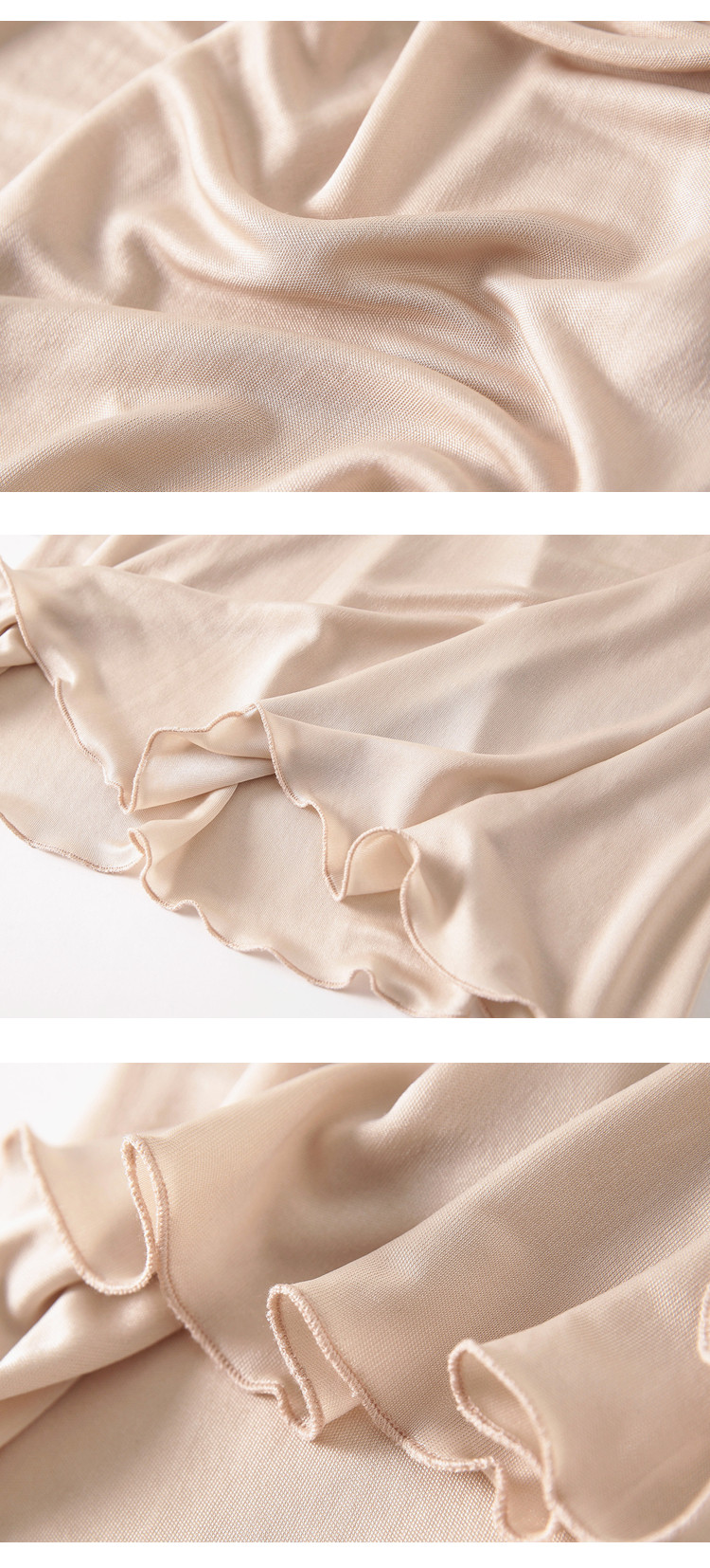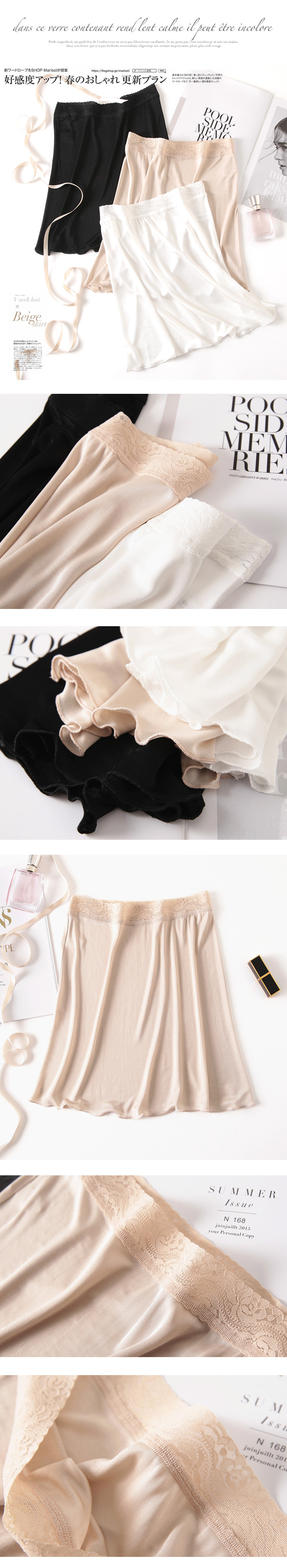 鳥言鳥語:針織真絲面料的半身裙,手感很好,舒適透氣用來做打底裙或者襯裙非常好,不會悶熱,幾乎感覺不到她的存在。(*^__^*) 嘻嘻……