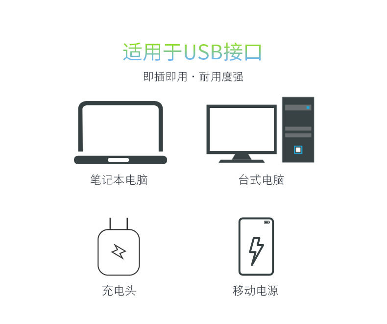 供電:標準USB接口,只要是USB都可以插,5V電源、移動電源,筆記本,上網本,臺式電腦都可以。
