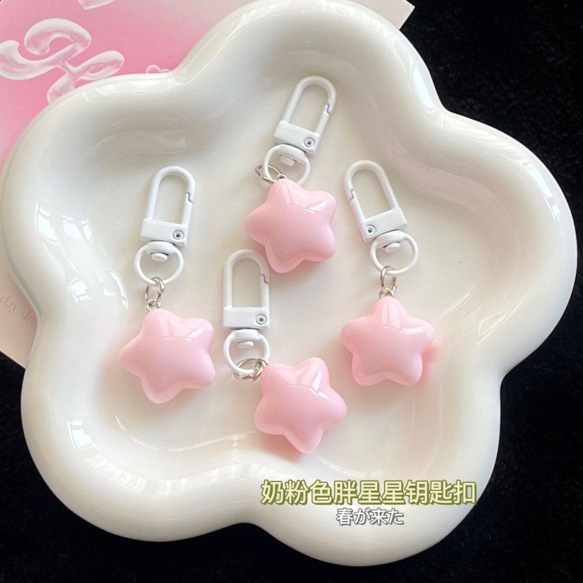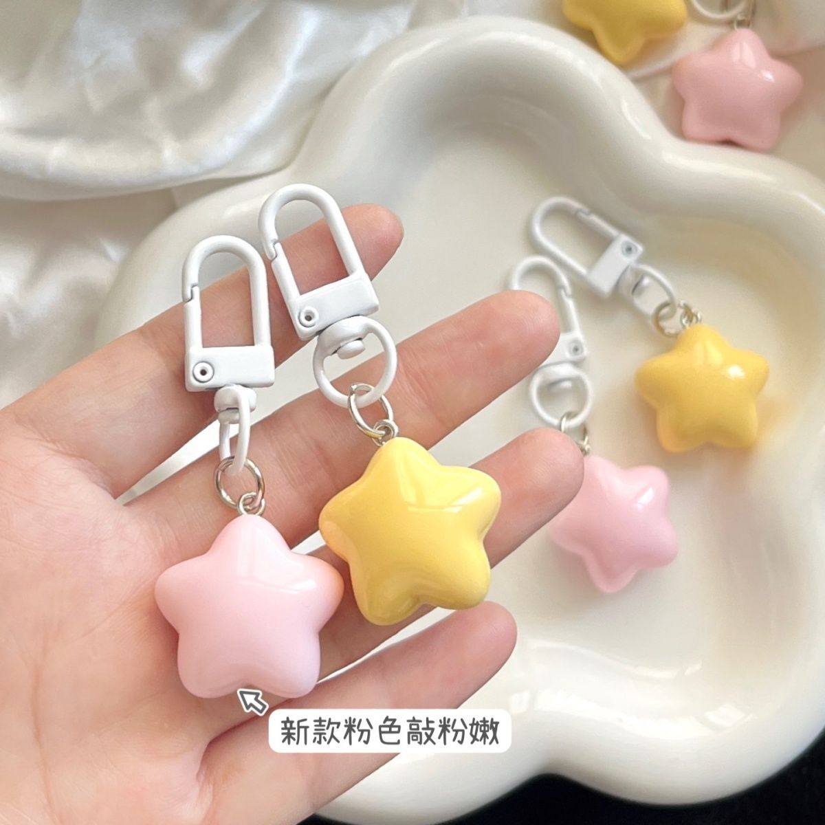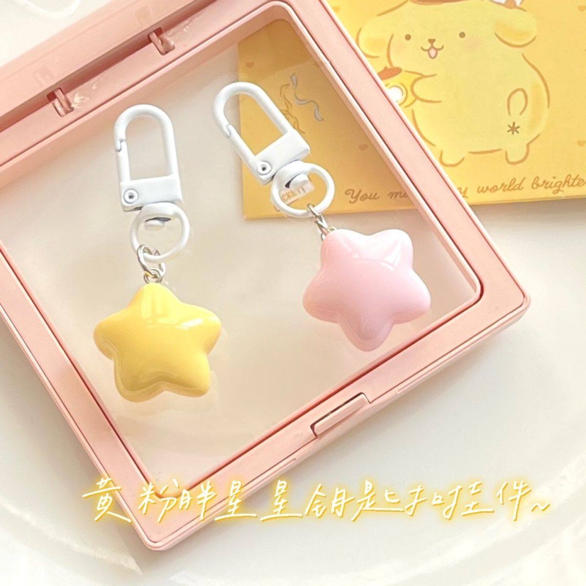 粉嫩奶黃星星鑰匙扣少女心軟萌ins五角星背包掛件送閨蜜情侶禮物