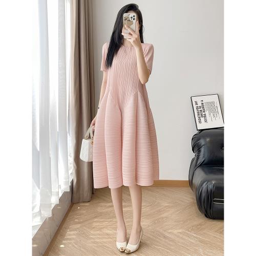三宅風褶皺連衣裙2025夏季新款氣質百搭寬松大碼女裝花苞百褶裙潮