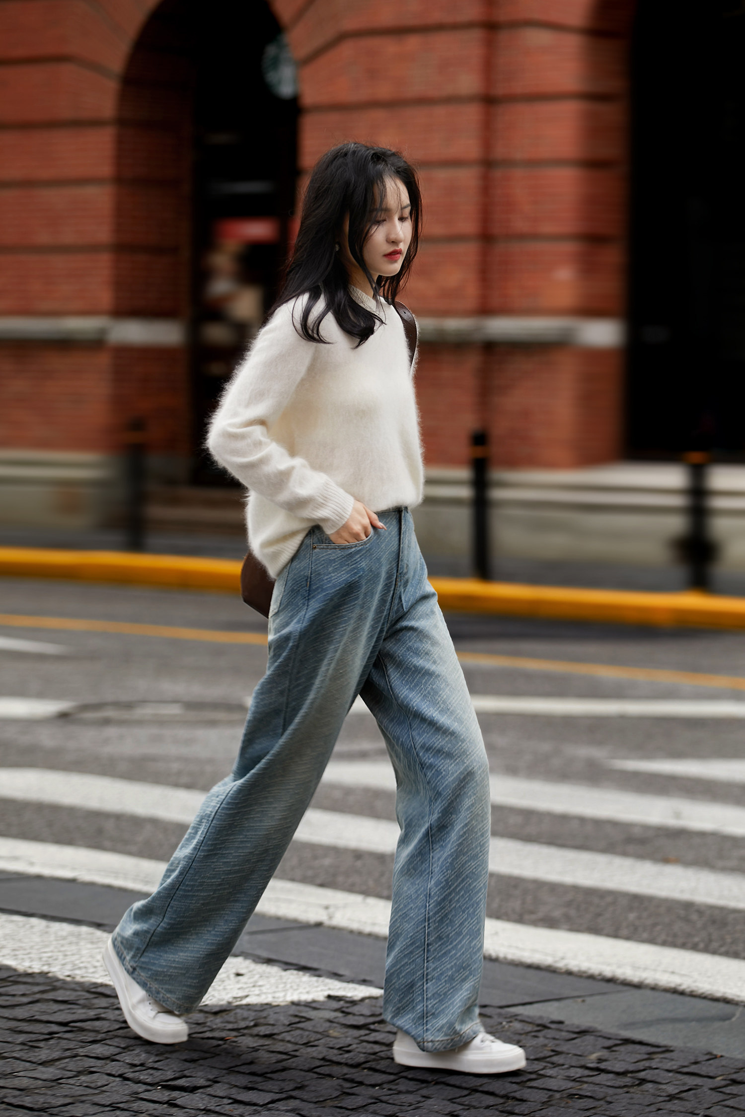 直筒闊腿拖地牛仔褲,時髦好駕馭