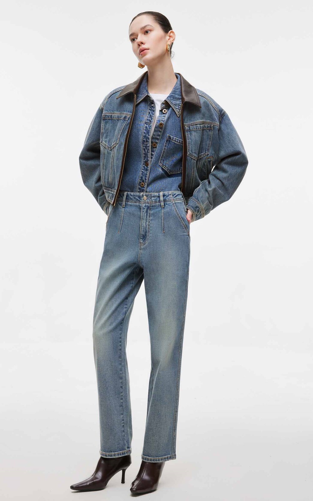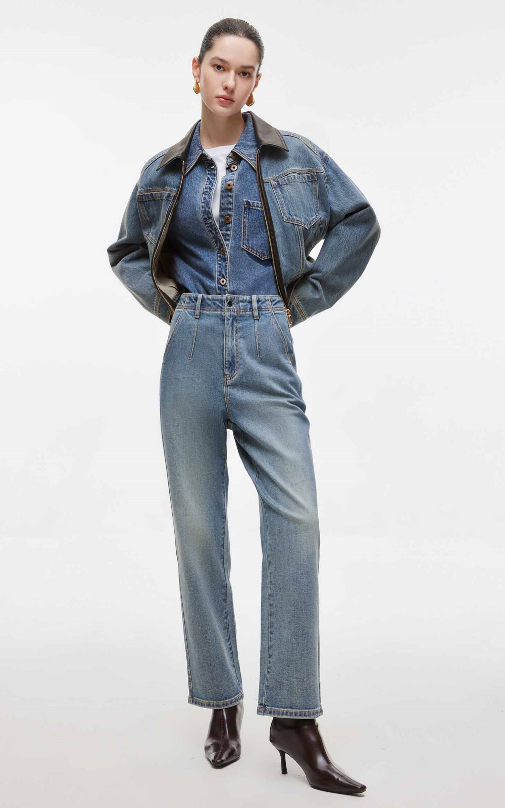 *模特佩戴配飾均為搭配不做銷售用途,商品顏色請以實物為準,可參考平鋪顏色;牛仔因染色工藝洗滌的時候會褪色,請您注意和淺色衣服分開洗滌