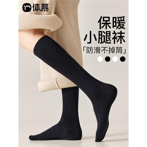 黑色小腿襪子女秋冬款高筒襪純棉加厚長襪微壓顯瘦長筒過膝襪春秋
