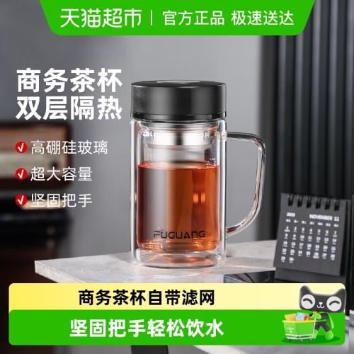 (免運)富光玻璃杯雙層隔熱帶把辦公杯大容量帶蓋泡茶杯商務男士水杯